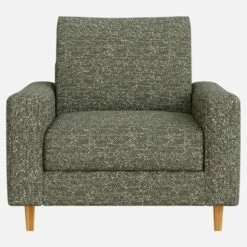 Habitat Fauteuil En Tissu Lucca – Vert Mousse – Accoudoirs Droits – Pieds En équerre En Chêne Huilé – Confort Ferme