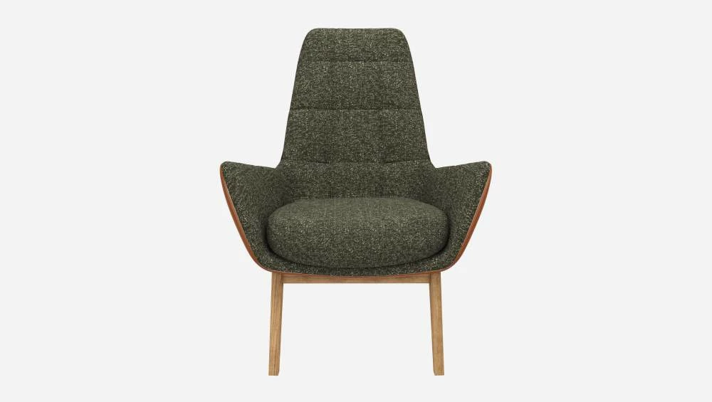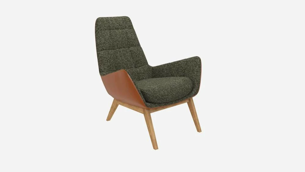 Habitat Fauteuil En Tissu Lucca Vert Mousse Et Cuir Vintage – Pieds Chêne