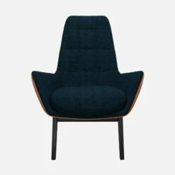 Le fauteuil Dena en tissu Melina bleu encreet cuir Vintage avec pieds noirs invite au repos et à la détente. Son design arbore des courbes enveloppantes. Il possède un dossier haut et matelassé. Ce dernier est composé d’un mélange de mousse et de plumes. Très confortable, ce fauteuil design est parfait pour les instants de lecture.
