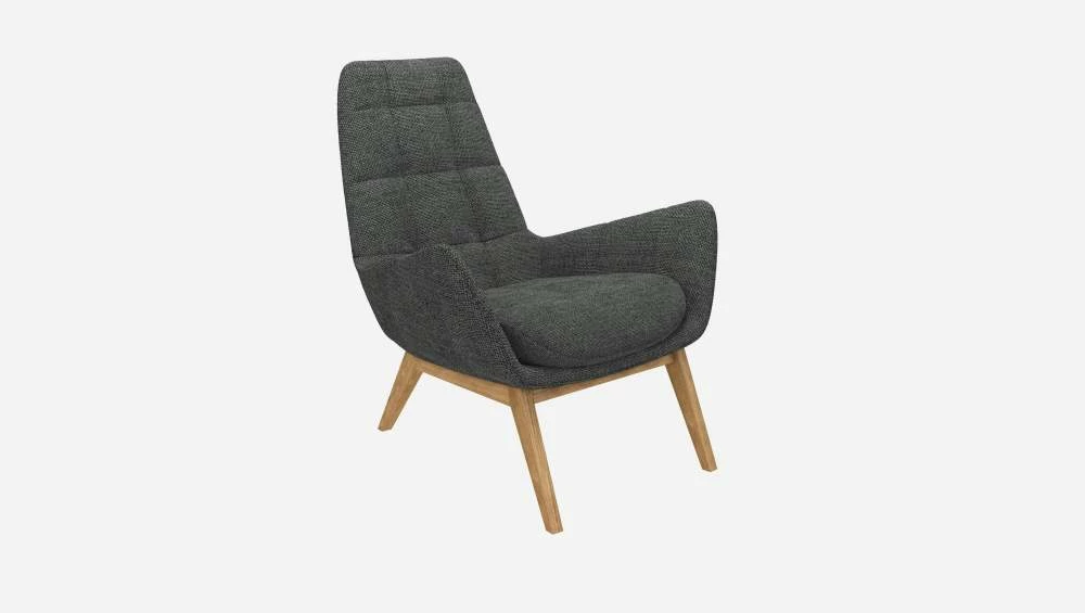 Habitat Fauteuil En Tissu Melina – Gris Ardoise – Pieds Chêne