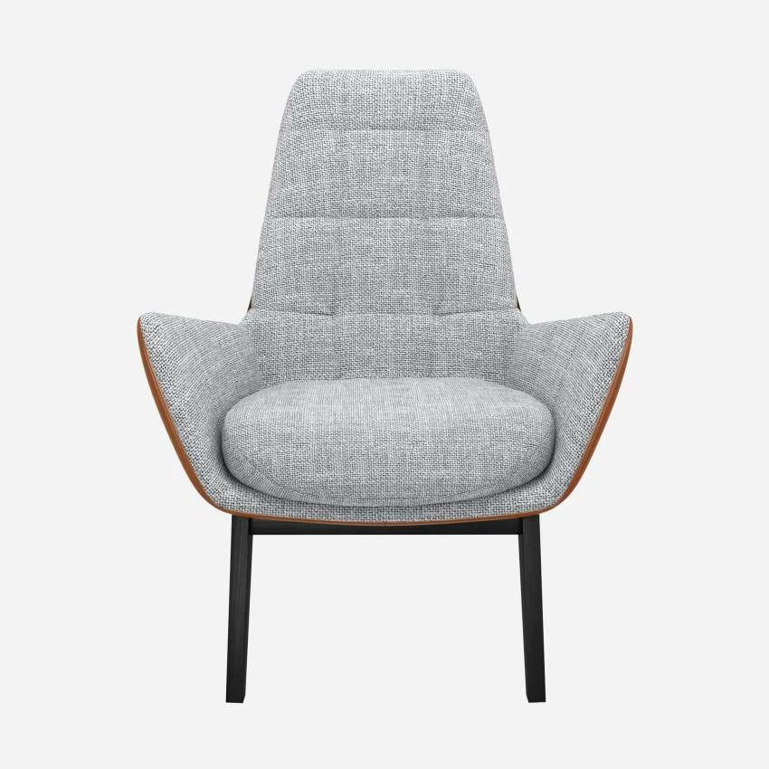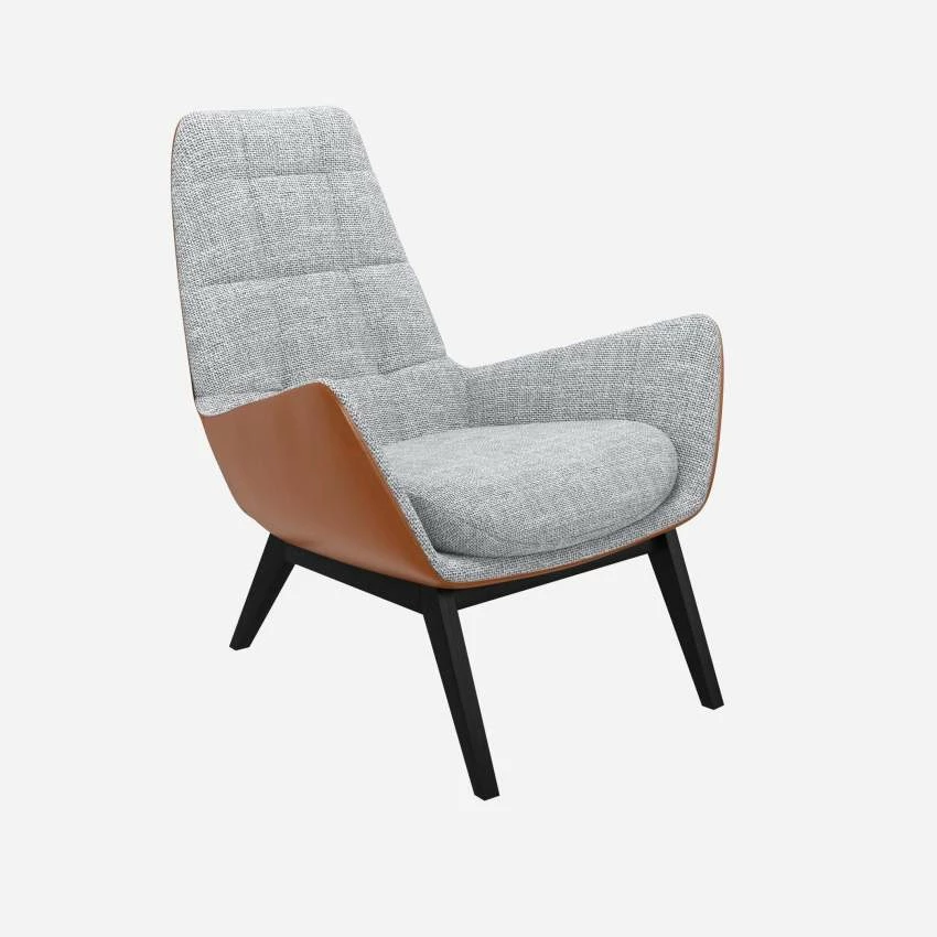 Le fauteuil Dena en tissu Melina gris asphalte et cuir Vintage avec pieds noirs invite au repos et à la détente. Son design arbore des courbes enveloppantes. Il possède un dossier haut et matelassé. Ce dernier est composé d’un mélange de mousse et de plumes. Très confortable, ce fauteuil design est parfait pour les instants de lecture.