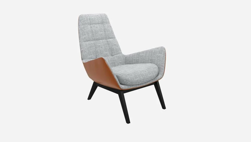 Habitat Fauteuil En Tissu Melina Gris Asphalte Et Cuir Vintage – Pieds Noirs