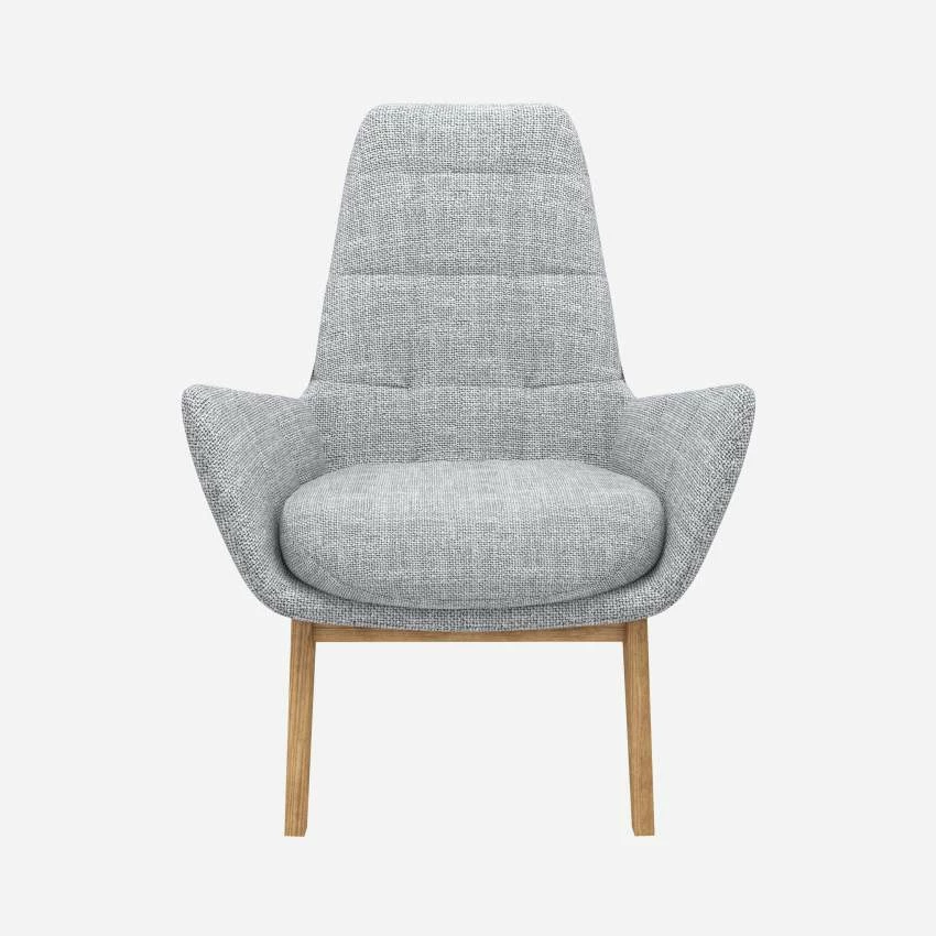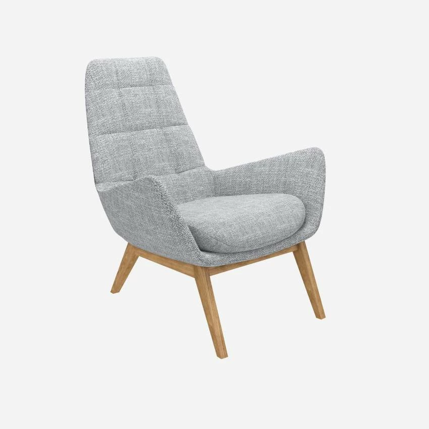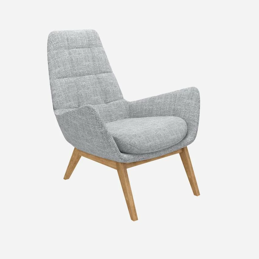 Le fauteuil Dena en tissu Melina gris asphalte avec pieds chêne invite au repos et à la détente. Son design arbore des courbes enveloppantes. Il possède un dossier haut et matelassé. Ce dernier est composé d’un mélange de mousse et de plumes. Très confortable, ce fauteuil design est parfait pour les instants de lecture.