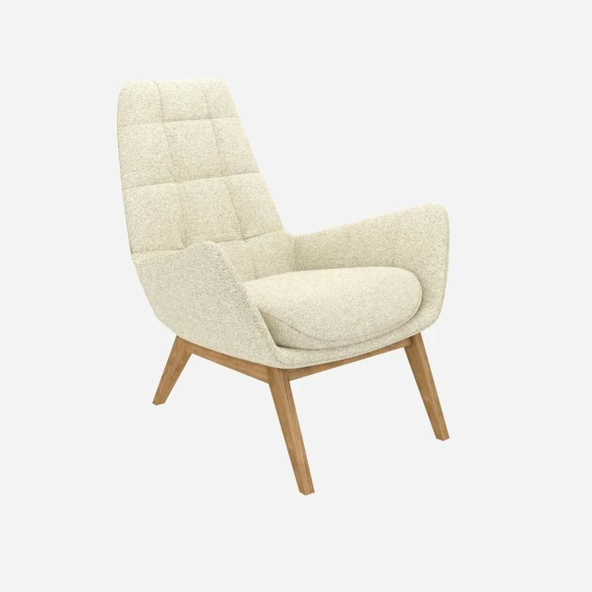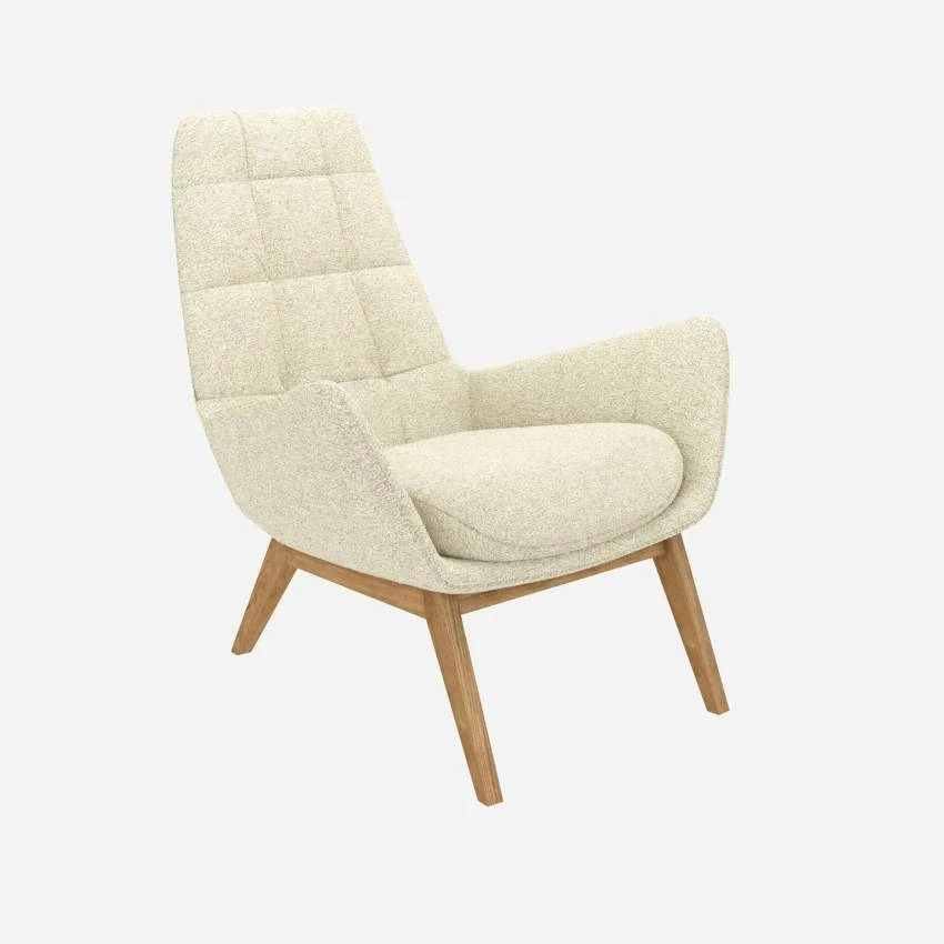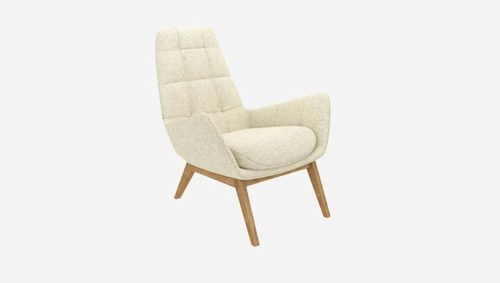 Habitat Fauteuil En Tissu Venezia – Blanc Craie – Pieds Chêne