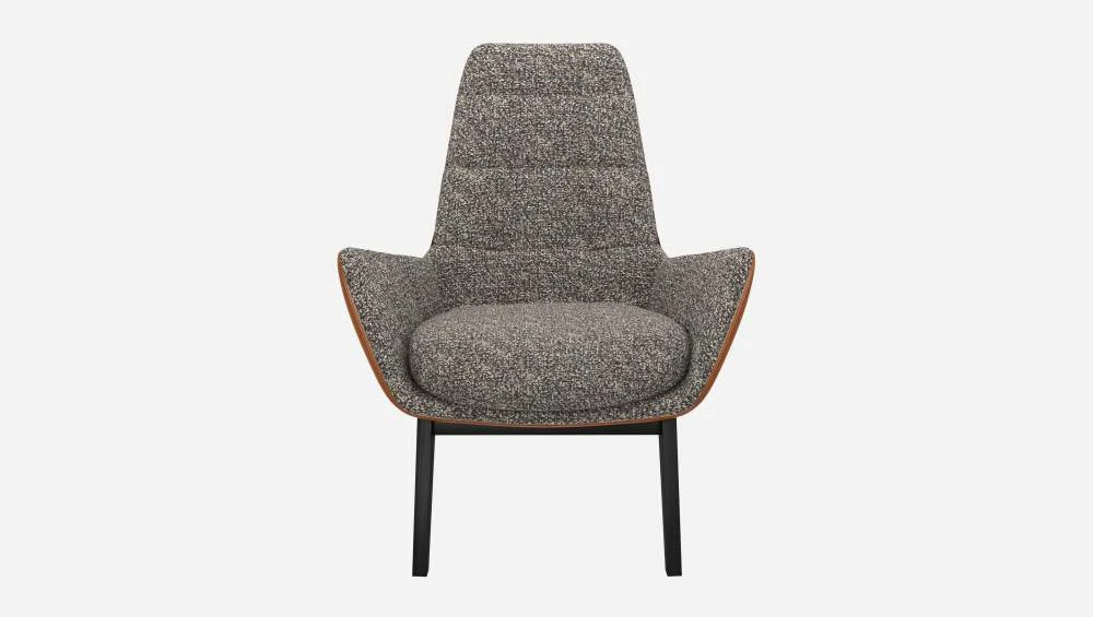 Le fauteuil en tissu Venezia bleu zingué et cuir Vintage avec pieds noirs peut être associé avec le repose-pieds de la même collection.
