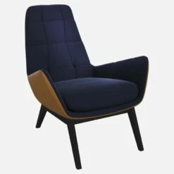 Habitat Fauteuil En Velours Bleu Encre Et Cuir Vintage – Pieds Noirs