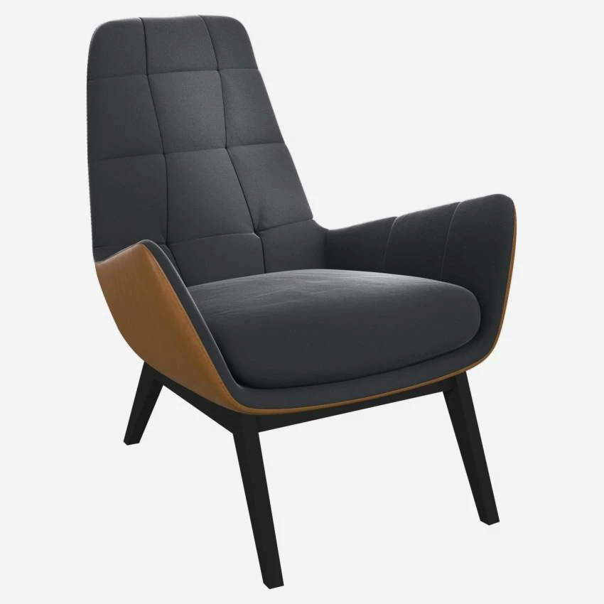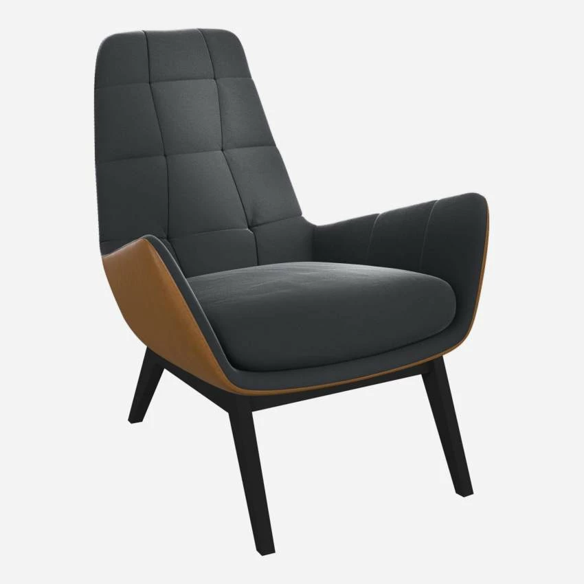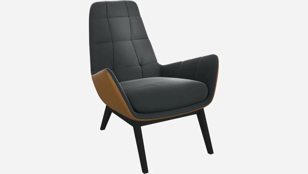 Habitat Fauteuil En Velours Gris Ardoise Et Cuir Vintage – Pieds Noirs