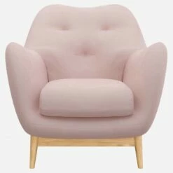 Fabriqué en Espagne, le fauteuil Melchior en velours rose possède des pieds fuselés très aériens. Son dossier capitonné, son design tout en rondeur et sa couleur rose poudré s’inspirent librement de l’esprit boudoir.