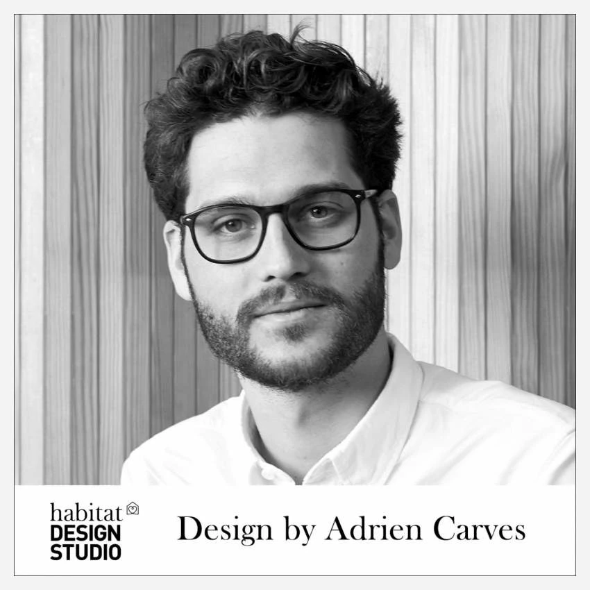 Au sujet du designer : Adrien Carvès intègre en 2015 le Studio de Design Habitat. Passionné de design mobilier, il a l’ambition de créer des meubles intemporels et fonctionnels pour un bien-être quotidien.