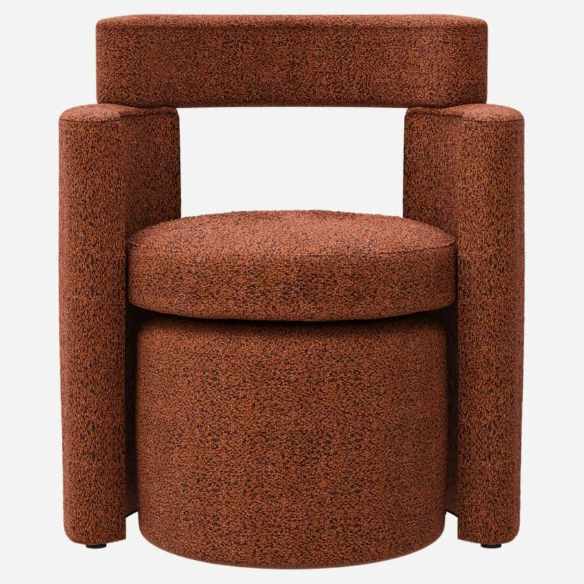 De fabrication européenne, le fauteuil Up en tissu marron fauve affiche un look architecturé ; ses formes arrondies sont d’une grande douceur et invite à la détente. Deux-en-un, la partie inférieure de son assise se range et se détache pour devenir un pouf d’appoint ou un repose-pied pour davantage de confort.