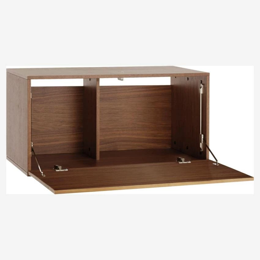 Le grand caisson de rangement modulaire Bocksey à la finition noyer adopte un design fermé et une teinte foncée. Il peut être positionné à la verticale comme à l’horizontale grâce à ces trous d’attache et de fixation pré-percés. Il peut être combiné à d’autres éléments de la même gamme pour une composition 100% originale.