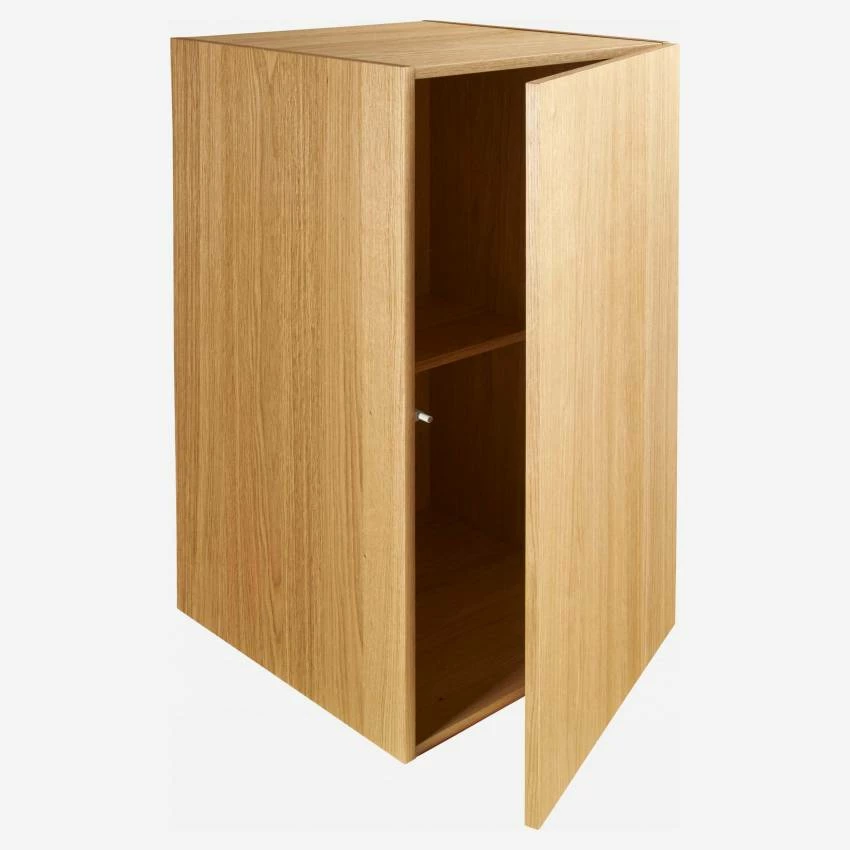 Le grand caisson de rangement modulaire Bocksey à la finition chêne adopte un design fermé et une teinte claire. Il peut être positionné à la verticale comme à l’horizontale grâce à ces trous d’attache et de fixation pré-percés. Il peut être combiné à d’autres éléments de la même gamme pour une composition 100% originale.