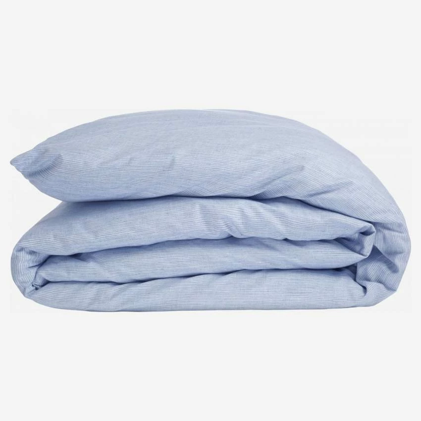 La housse de couette Skye mesure 220 x 240 cm et possède une finition boutons.De couleur bleue, elle est composée de fils de différentes nuances.
