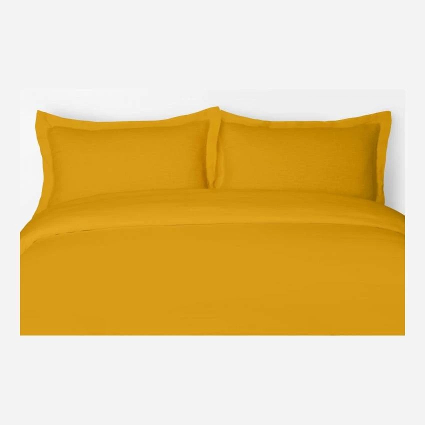 La housse de couette Linen II est adaptée aux couettes de 240 x 220 cm. De coloris jaune moutarde, elle vous enveloppe de douceur au moment du coucher.