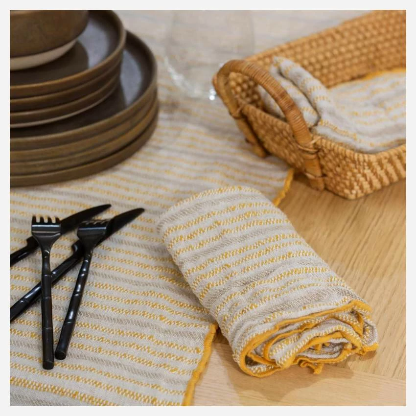 100% lin, le linge de table Ursa habille élégamment votre table de salle à manger ou de cuisine.