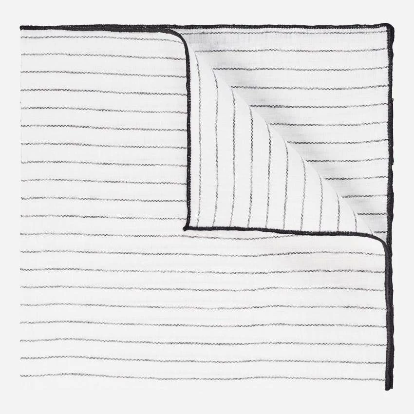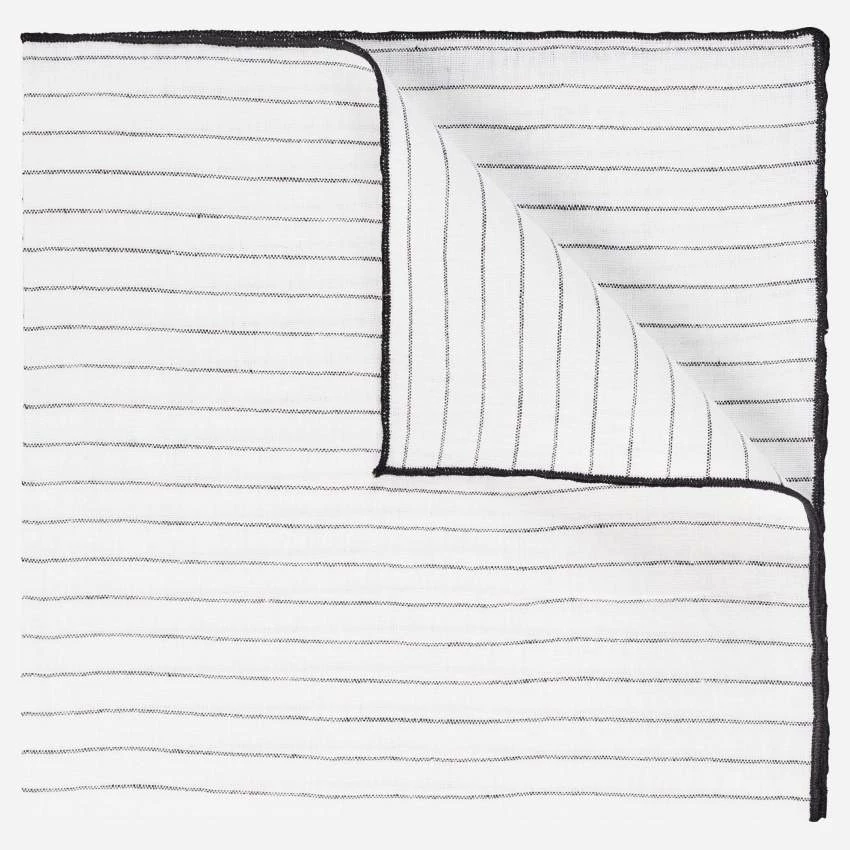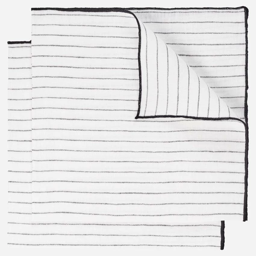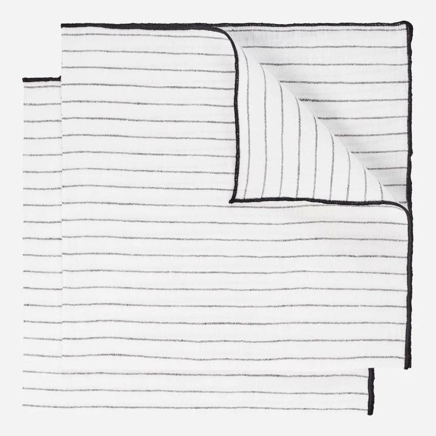 De couleur naturelle avec des rayures noires, ce lot se compose de 2 serviettes de table mesurant 45 x 45 cm.