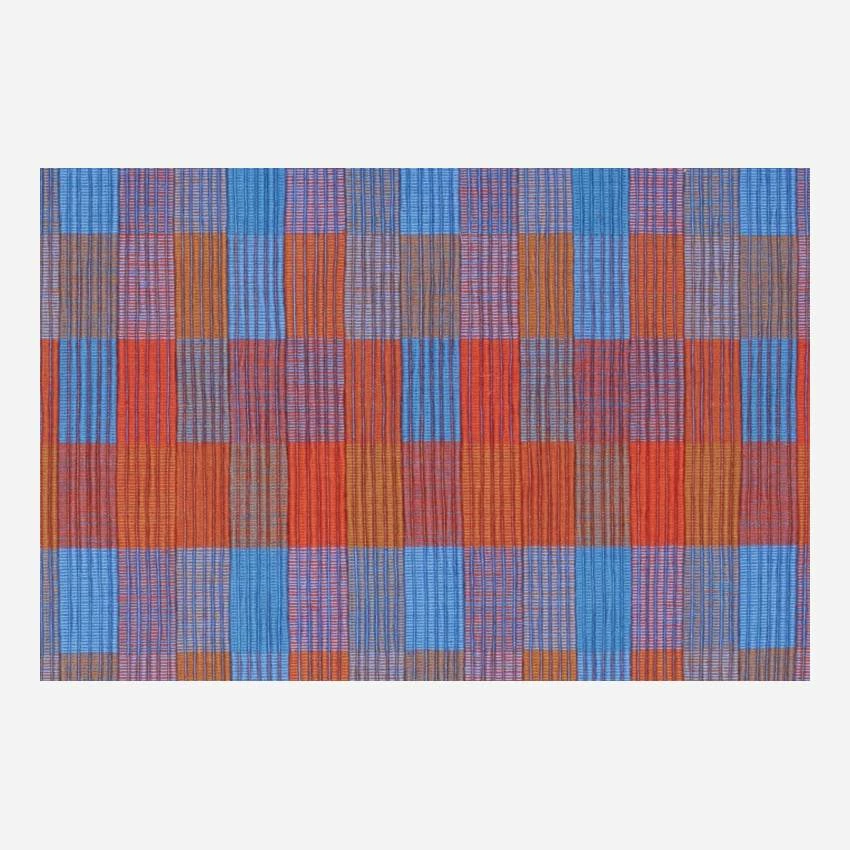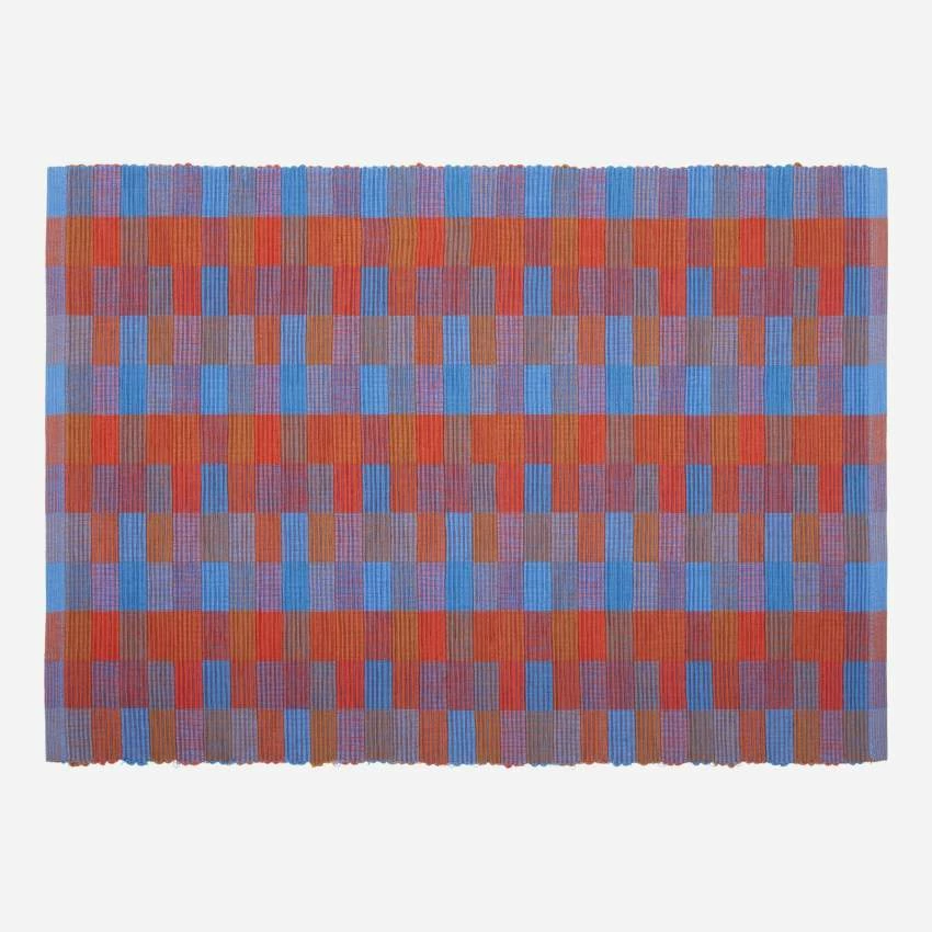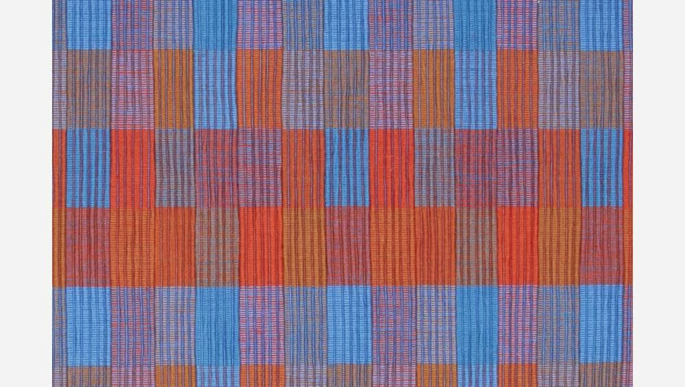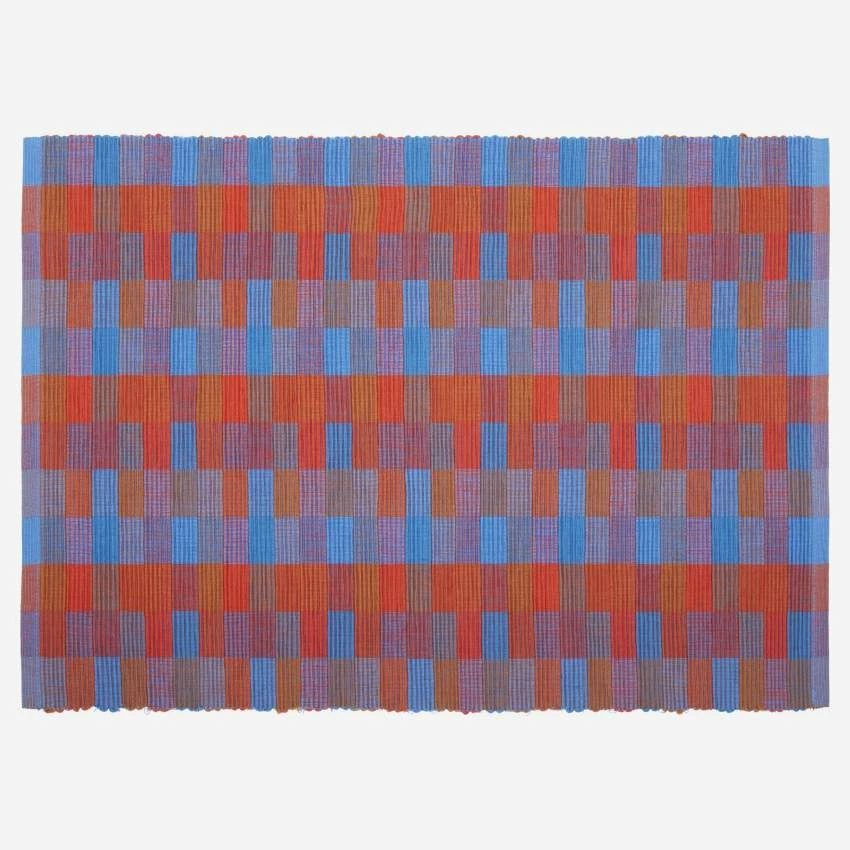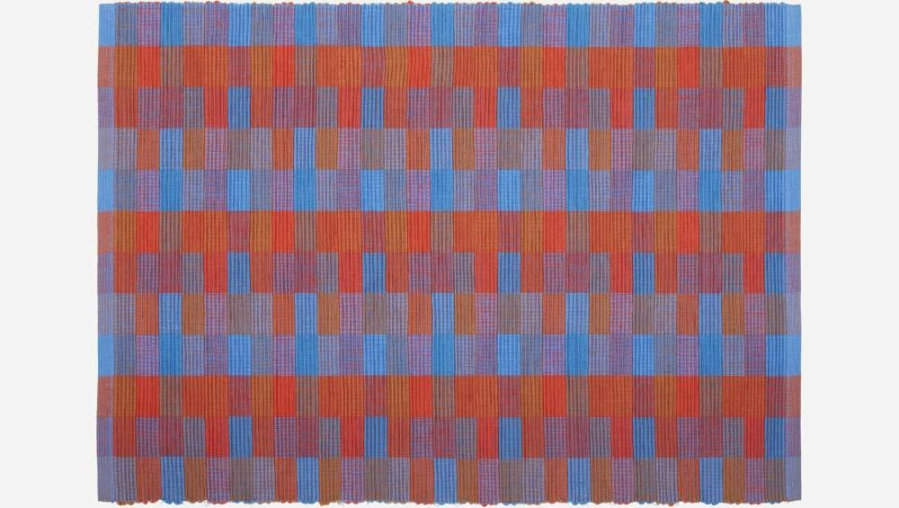 Ce lot réunit 2 sets de table en coton de 35 x 50 cm. Ces sets affichent un motif composé de rectangles bleus et rouges.