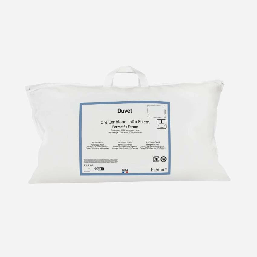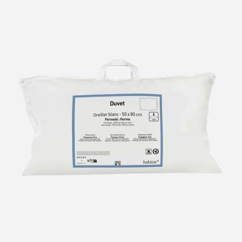 L’oreiller Duvet de 50 x 80 cm est garni de duvet de canard et de plumettes, des matières naturelles et biodégradables. Apportant gonflant et confort, cet oreiller utilise un garnissage qui n’emprisonne pas l’humidité. De plus, son enveloppe en percale de coton possède des finitions soignées pour éviter au duvet de s’échapper. Facile d’entretien, cet oreiller est certié sans pesticide. Il est également traité contre les acariens via des actifs naturels.