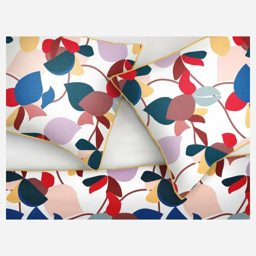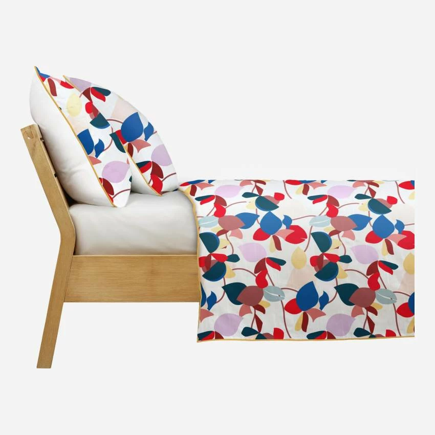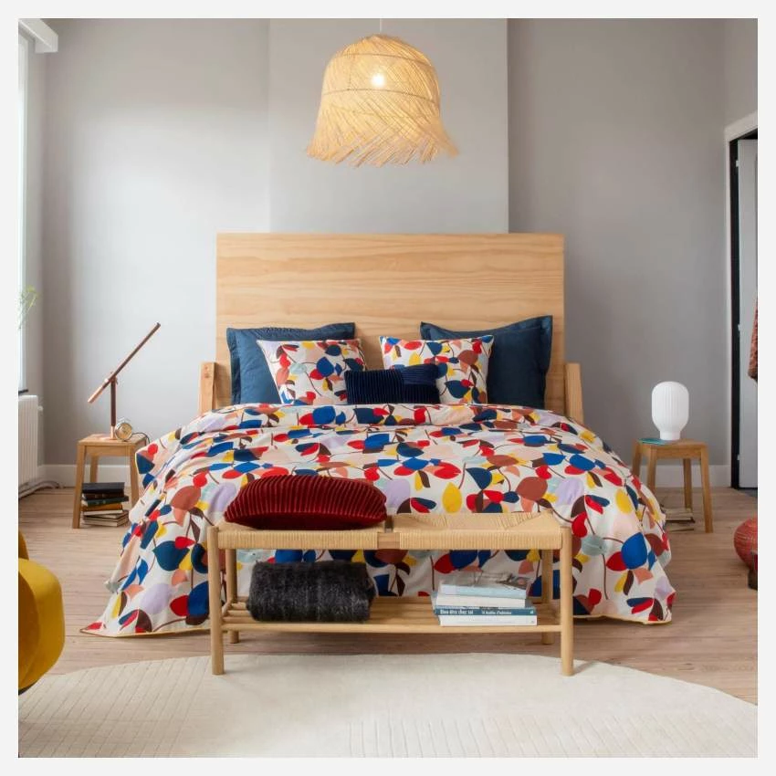 Avec son grand motif floral, la parure de lit Garice dynamise une chambre.
