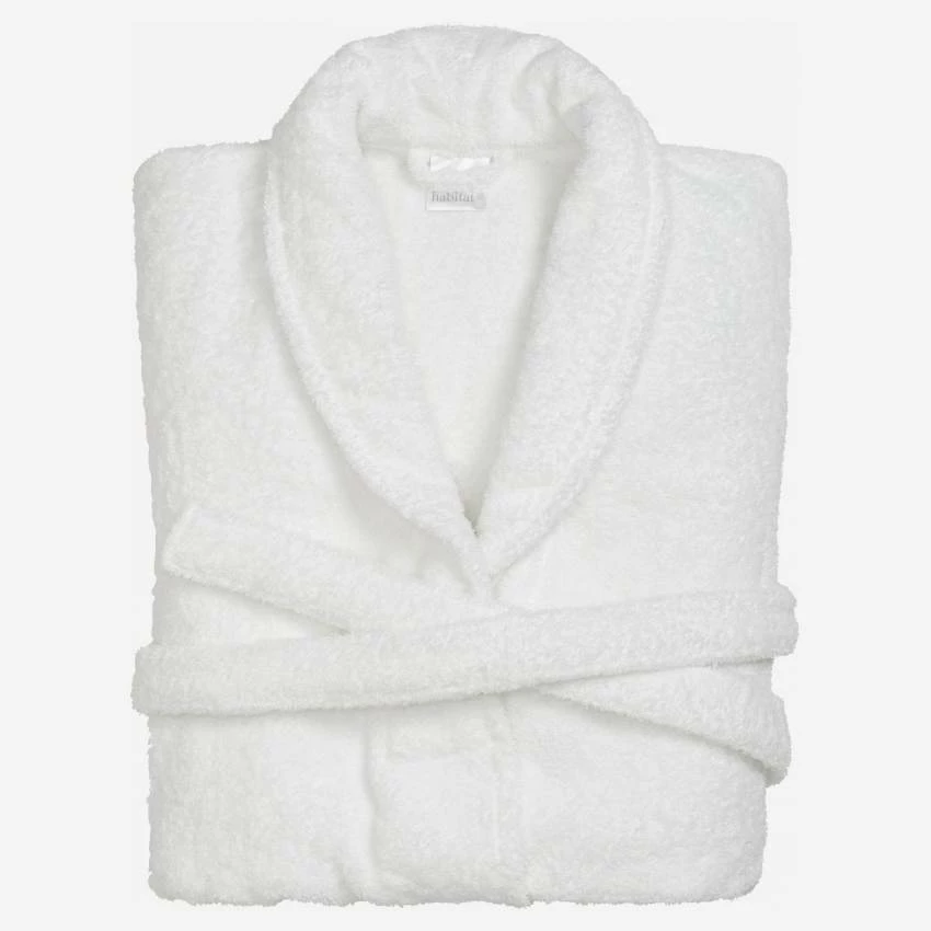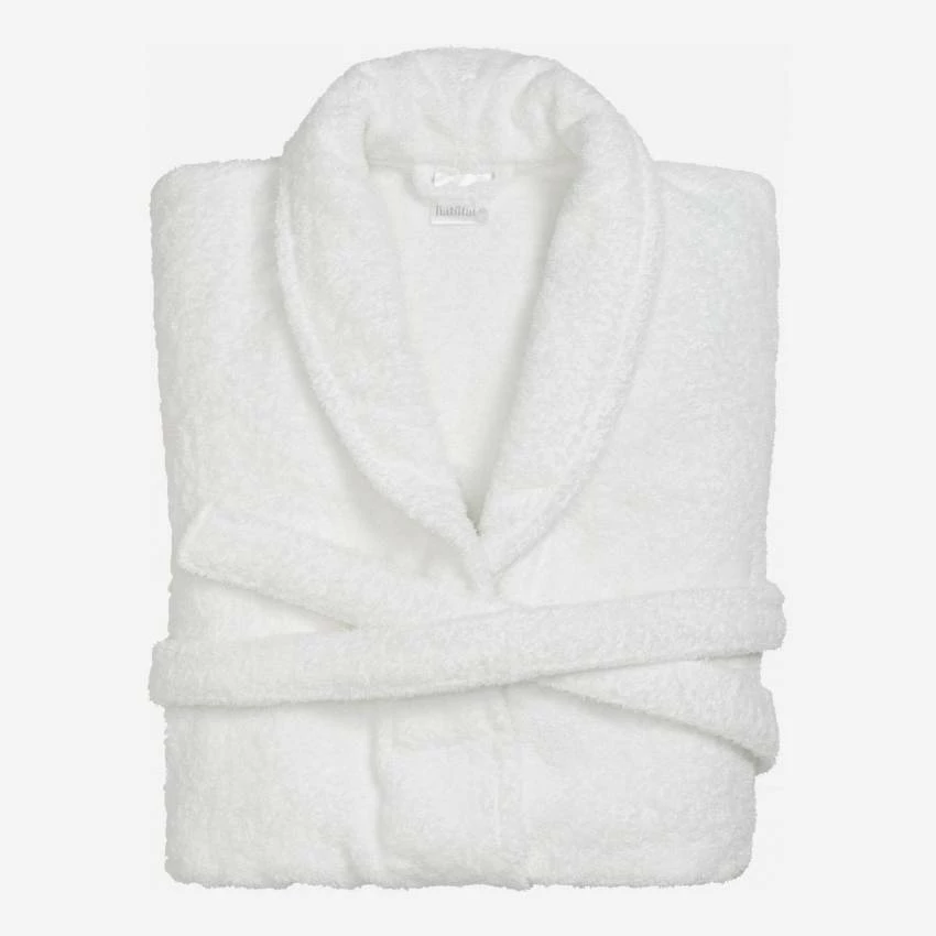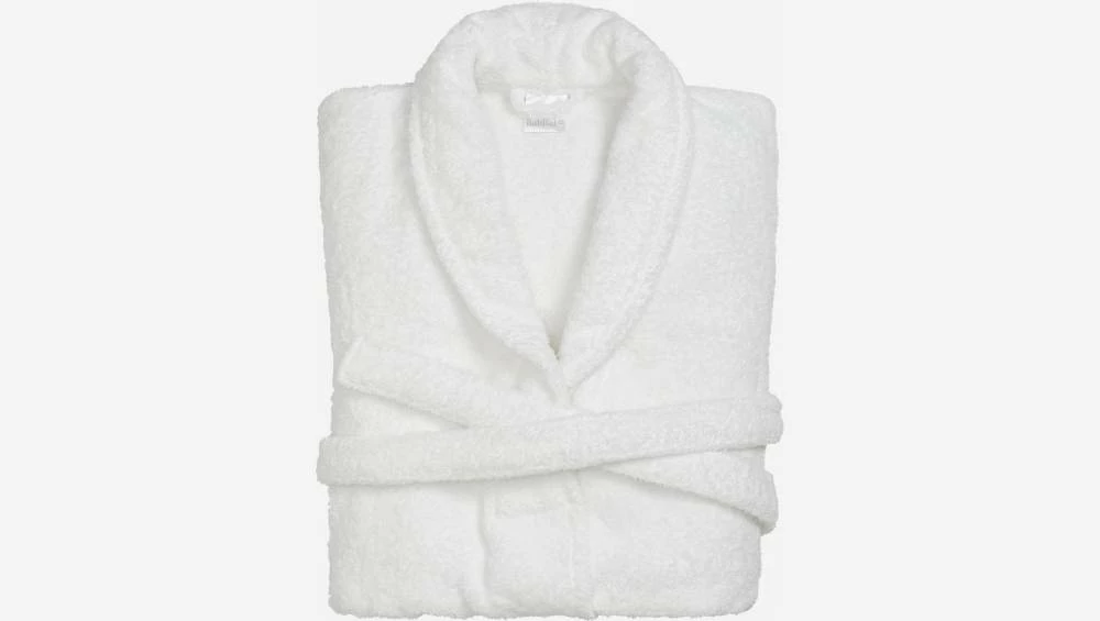 Le peignoir de bain Naxos taille unique de couleur blanche est en 100% coton et lavable en machine à 60°.