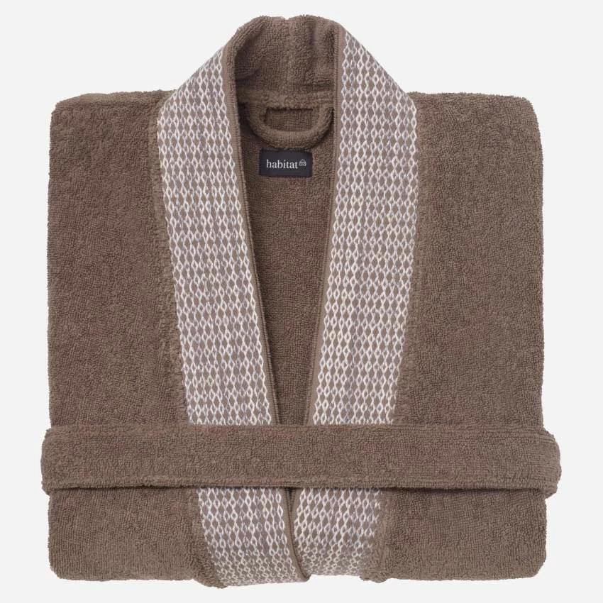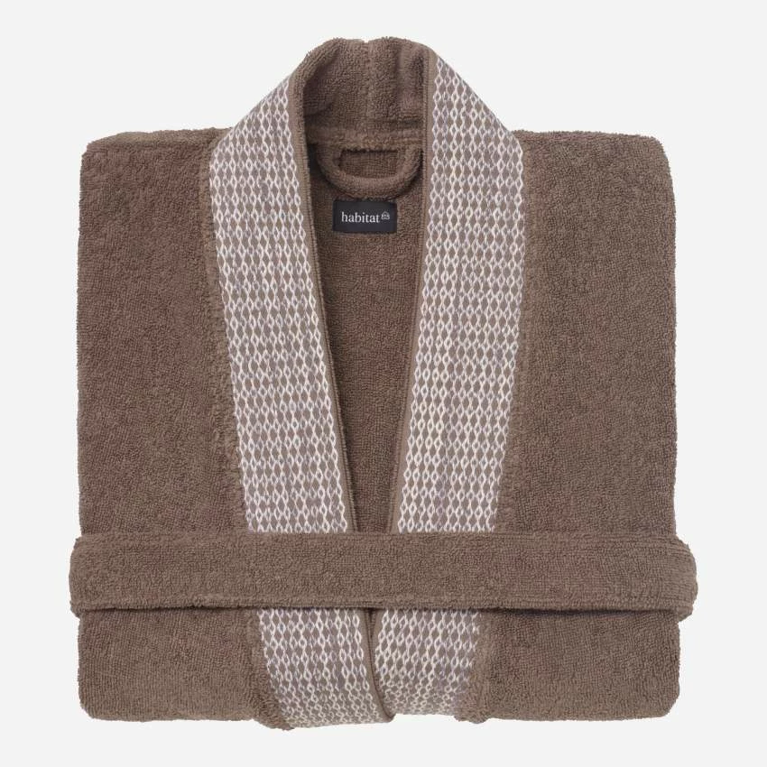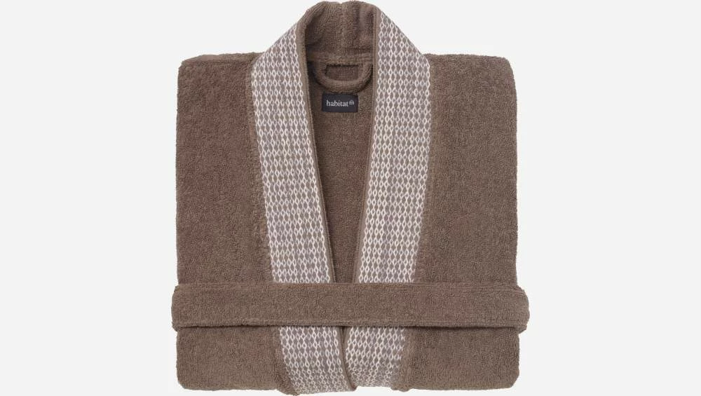 Épais et moelleux, le peignoir de bain Belize marron est en coton. De taille unique, il est à la fois chic et ultraconfortable. Très absorbant, il vous enveloppe de douceur. C’est l’accessoire indispensable lorsque vous sortez de la douche ou du bain pour conserver la chaleur.