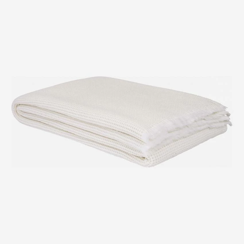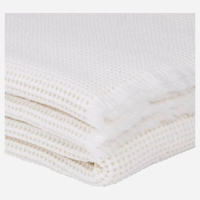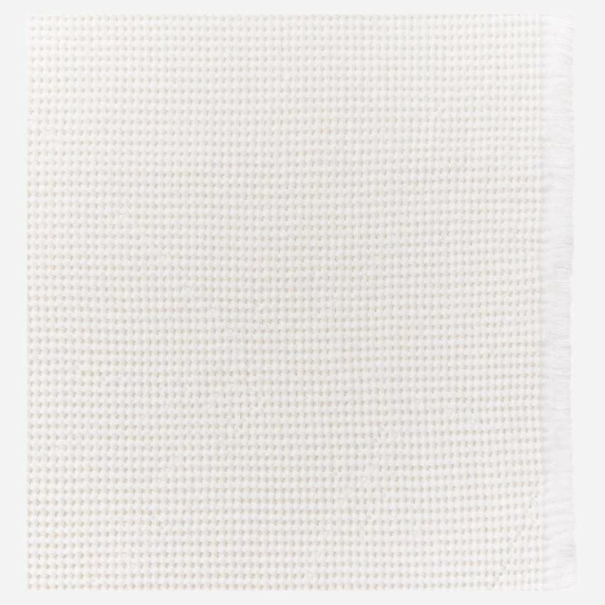 Le plaid Vitto est en coton lavé beige, il est tissé selon la technique du nid d’abeille pour un rendu texturé et esthétique. Il mesure 130 x 170 cm.