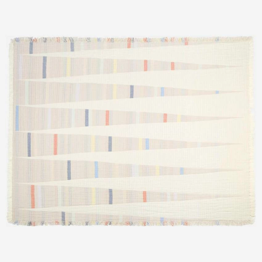 Création de Floriane Jacques du Studio de Design Habitat, Tabata est un plaid très doux en gaze de coton, fabriqué au Portugal. Son tissage en jacquard très relâché lui confère un aspect gaufré.