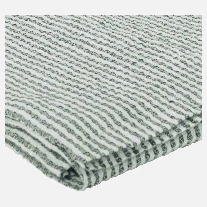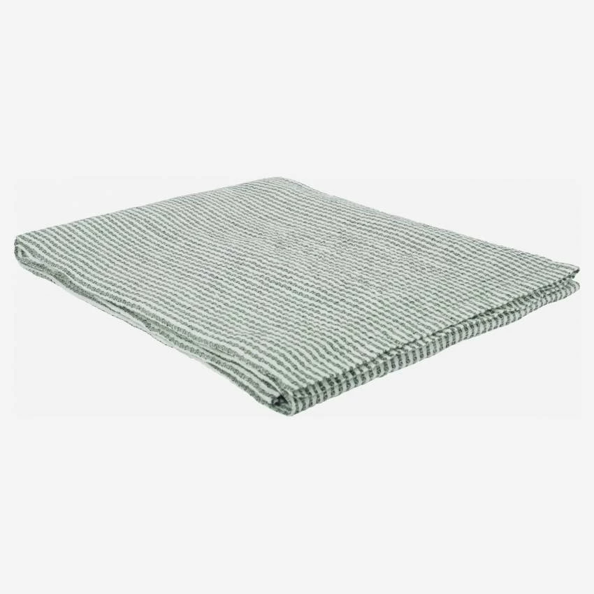 Ce plaid vert, de dimension 130 x 170 cm, est en lin. Reconnu pour ses vertus isolantes et thermorégulatrices, il vous accompagne en toute saison. L’été pour les soirées en bord de mer et l’hiver durant les journées froides et pluvieuses.