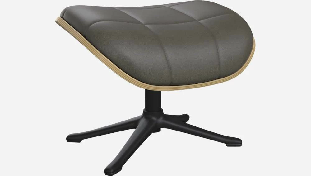 Habitat Repose-pieds En Chêne Et Cuir Savoy – Gris Ardoise – Pied Noir