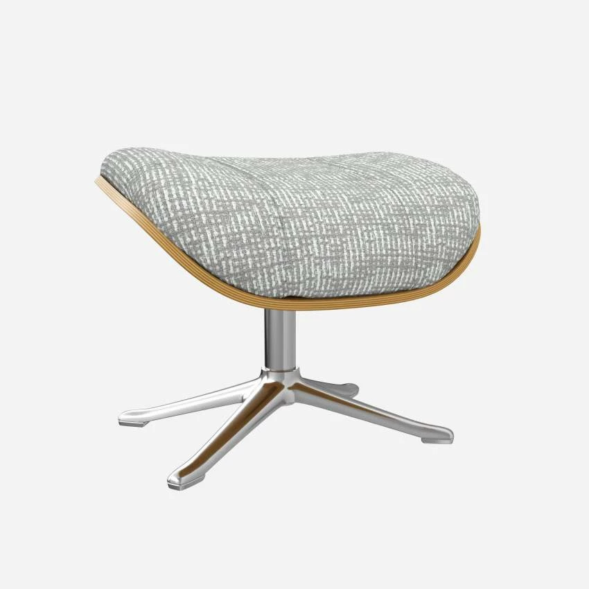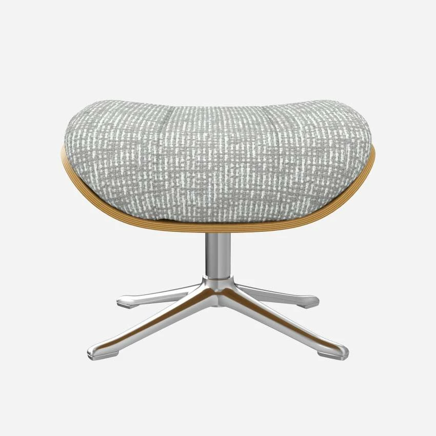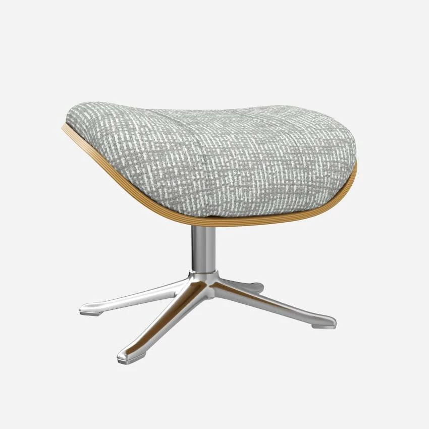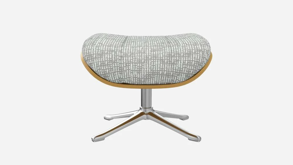 Le repose-pieds Marc en chêne et tissu Alba gris brume avec pied aluminium offre un confort ultime.