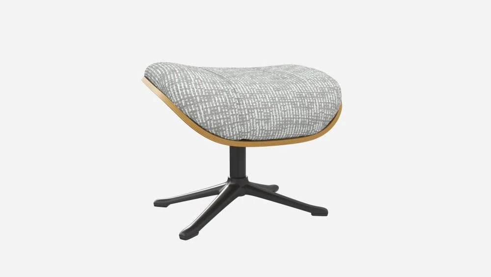 Le repose-pieds Marc en chêne et tissu Alba gris brume avec pied noir offre un confort ultime.