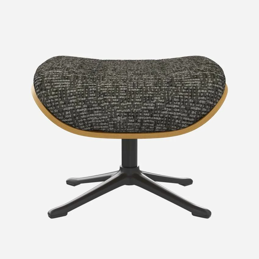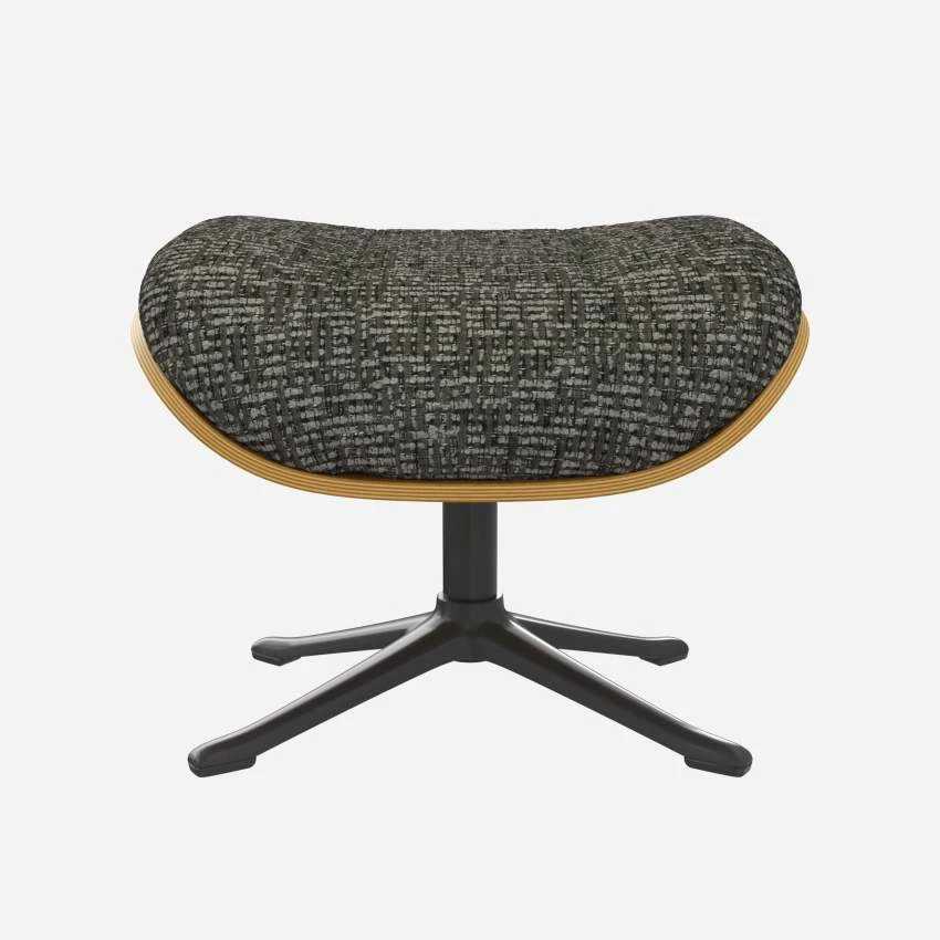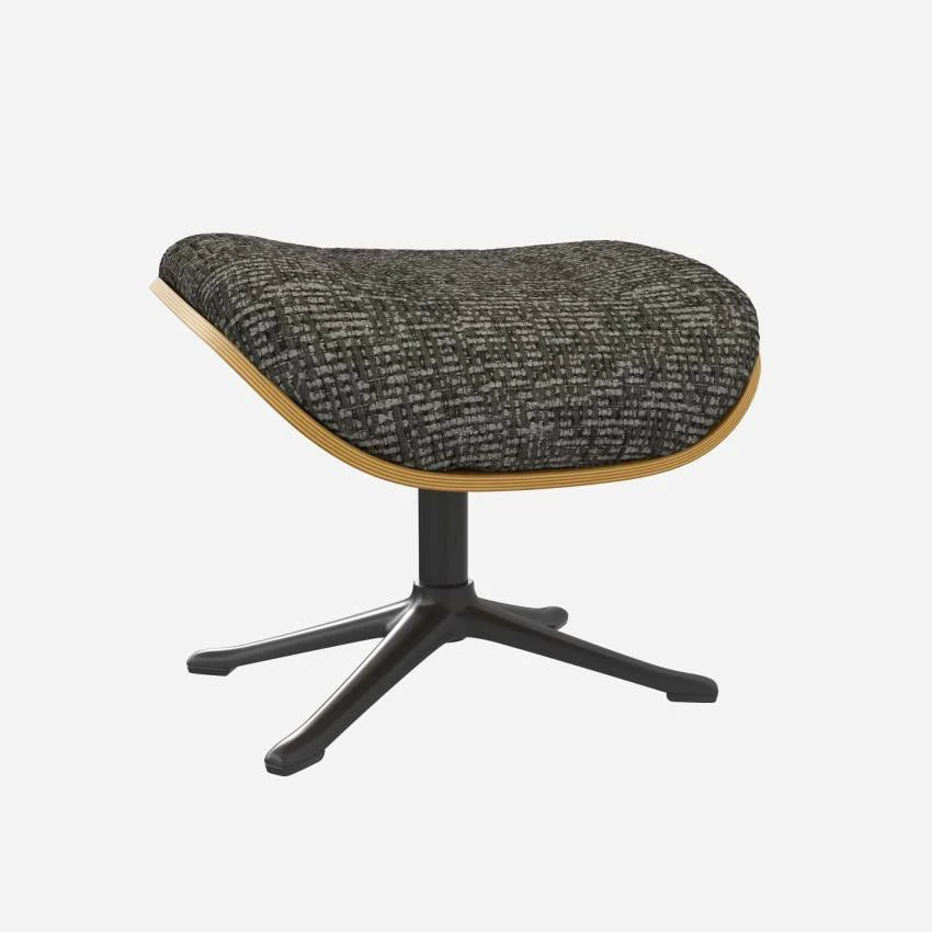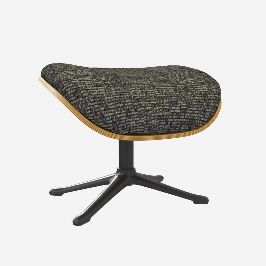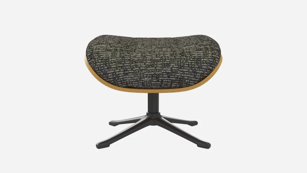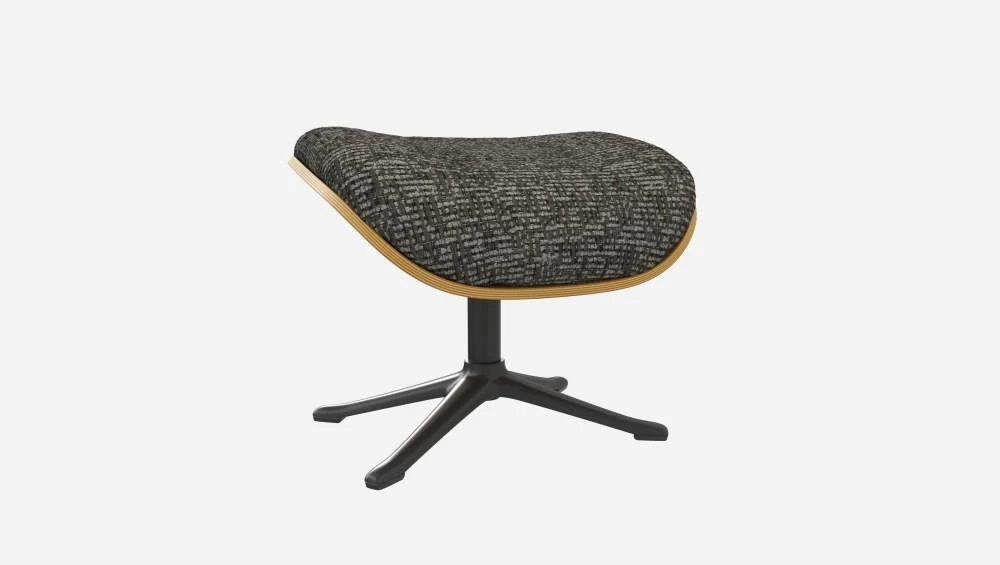 Le repose-pieds Marc en chêne et tissu Alba gris nuage avec pied noir offre un confort ultime.