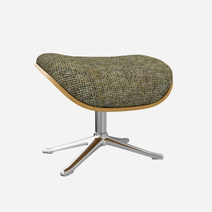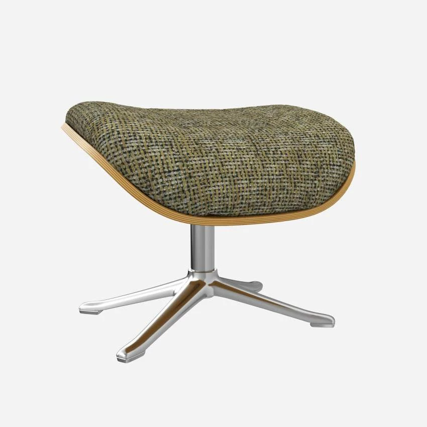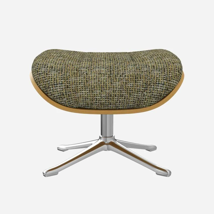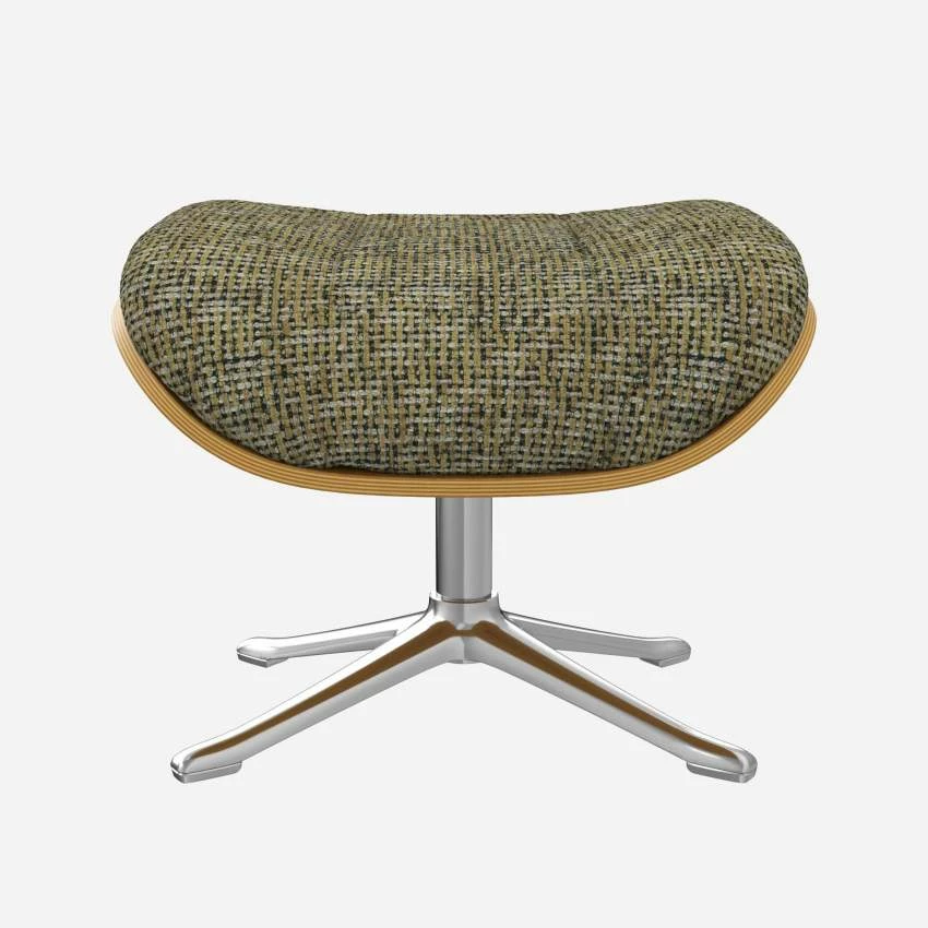Le repose-pieds Marc en chêne et tissu Alba vert orage avec pied aluminium offre un confort ultime.