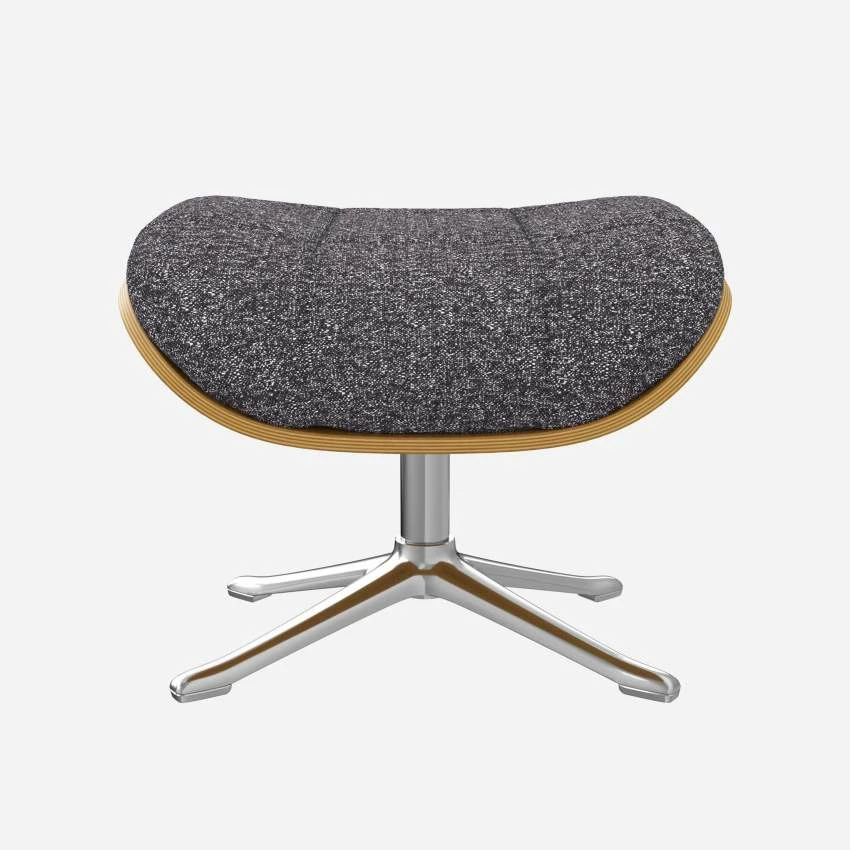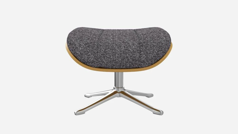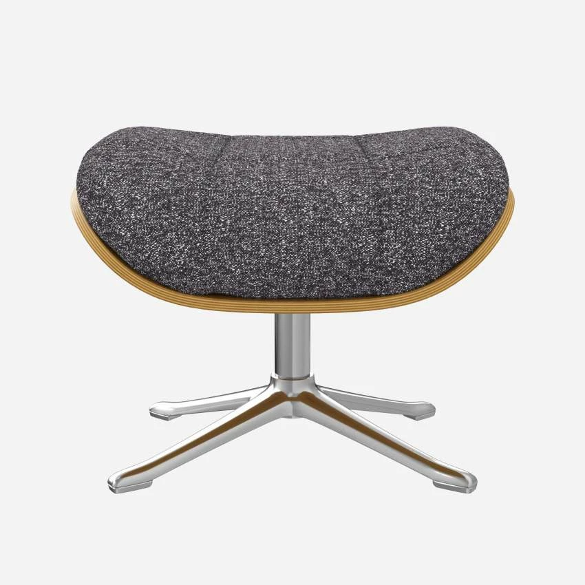 Habitat Repose-pieds En Chêne Et Tissu Lucca – Bleu Zingué – Pied Aluminium