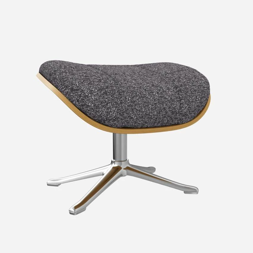 Le repose-pieds Marc en chêne et tissu Lucca bleu zingué avec pied aluminium offre un confort ultime.