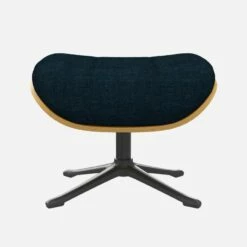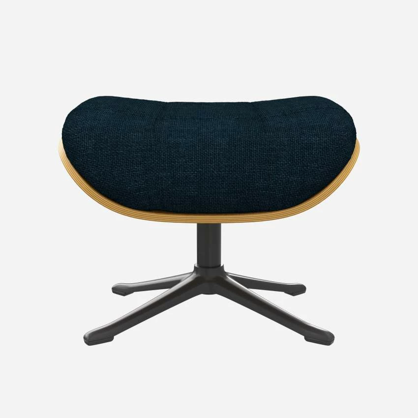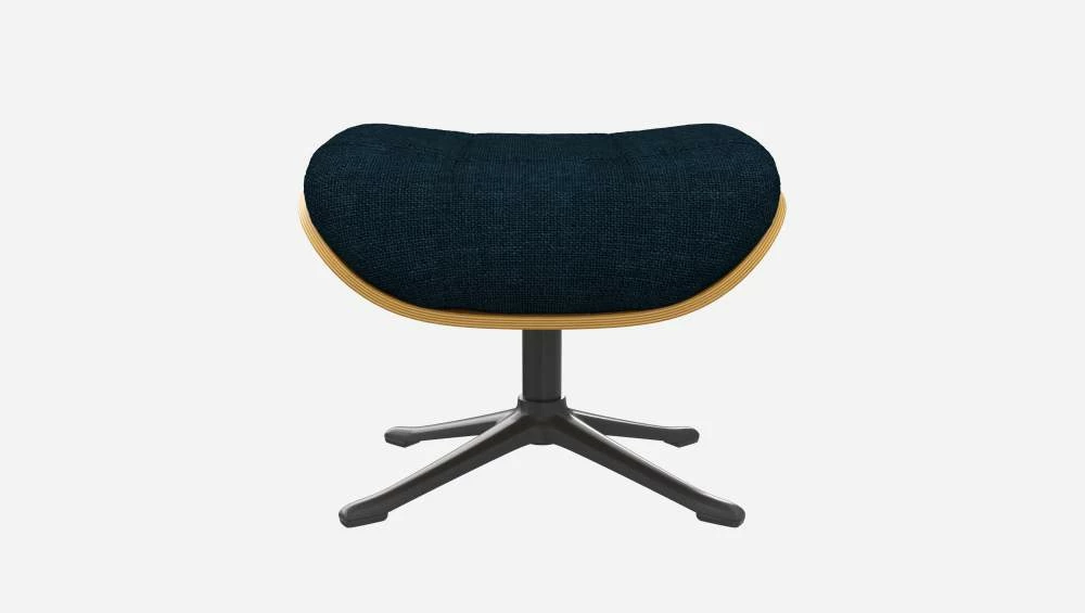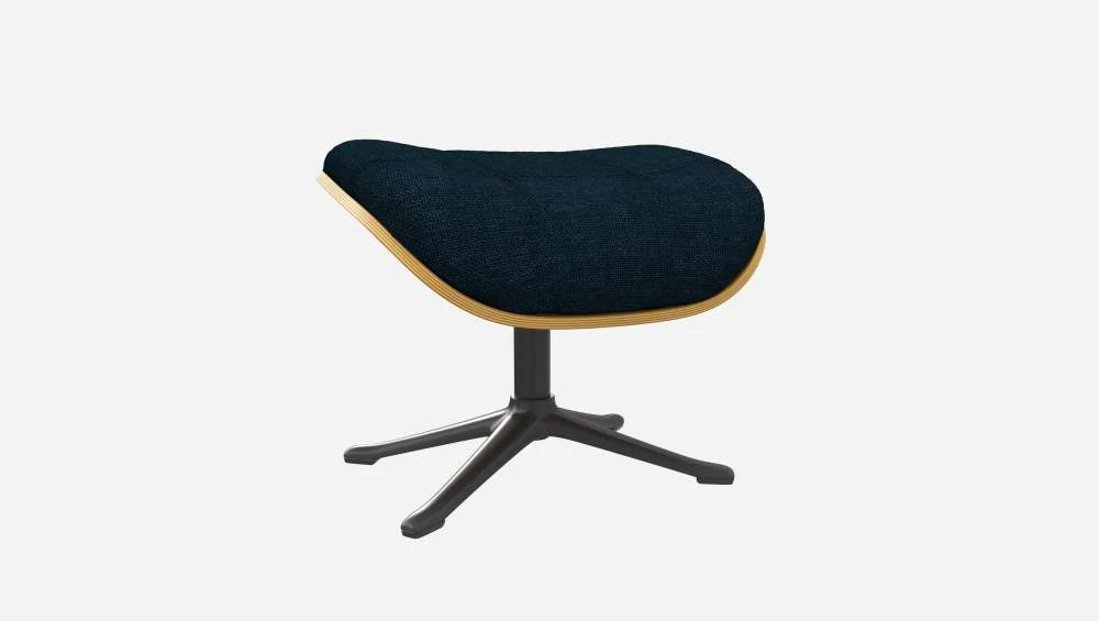 Le repose-pieds Marc en chêne et tissu Melina bleu encre avec pied noir offre un confort ultime.