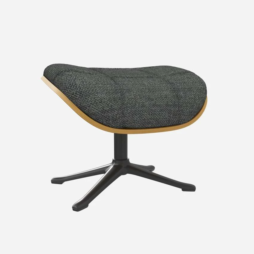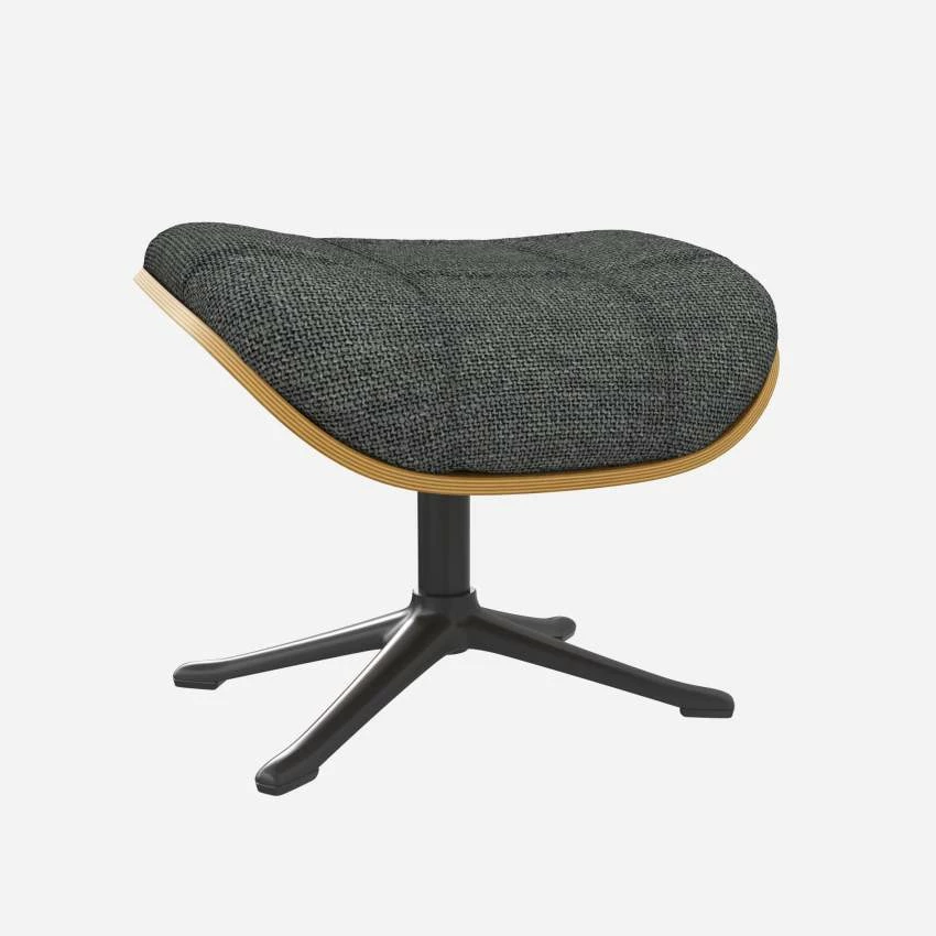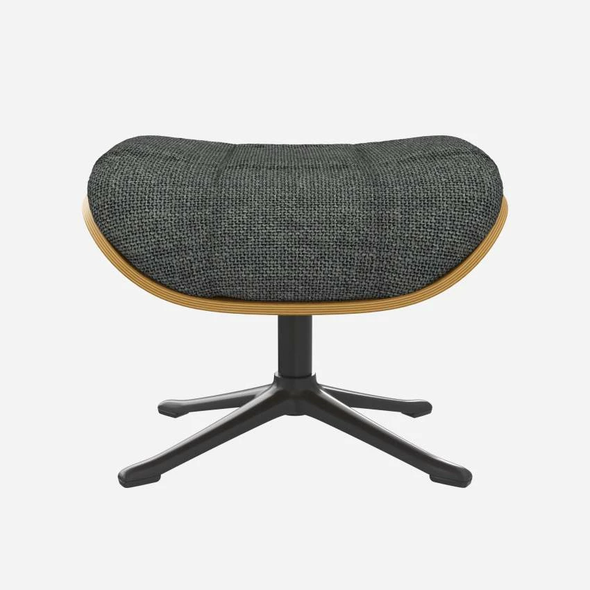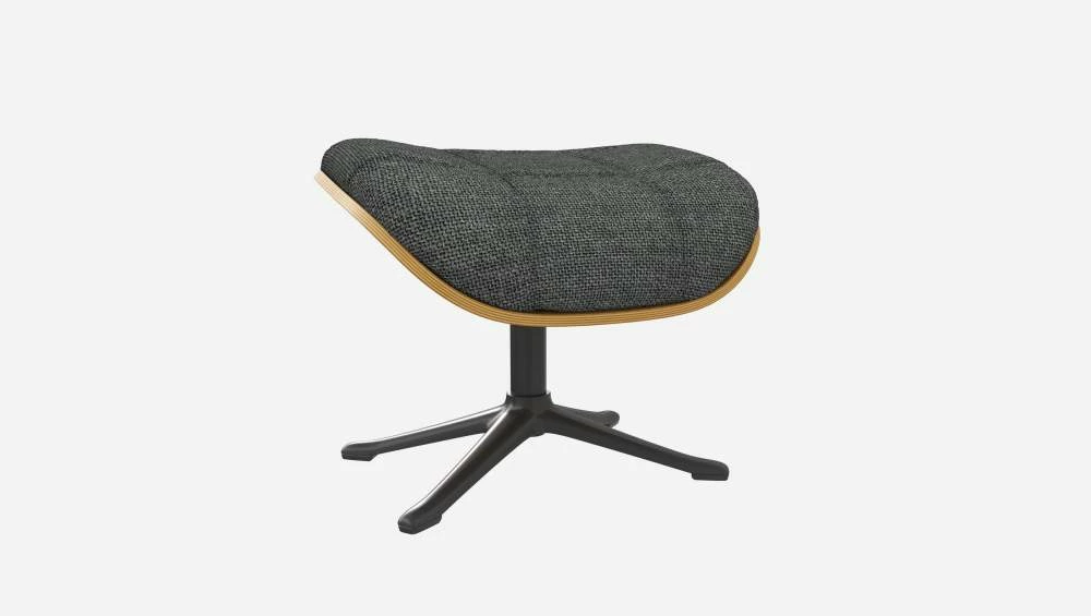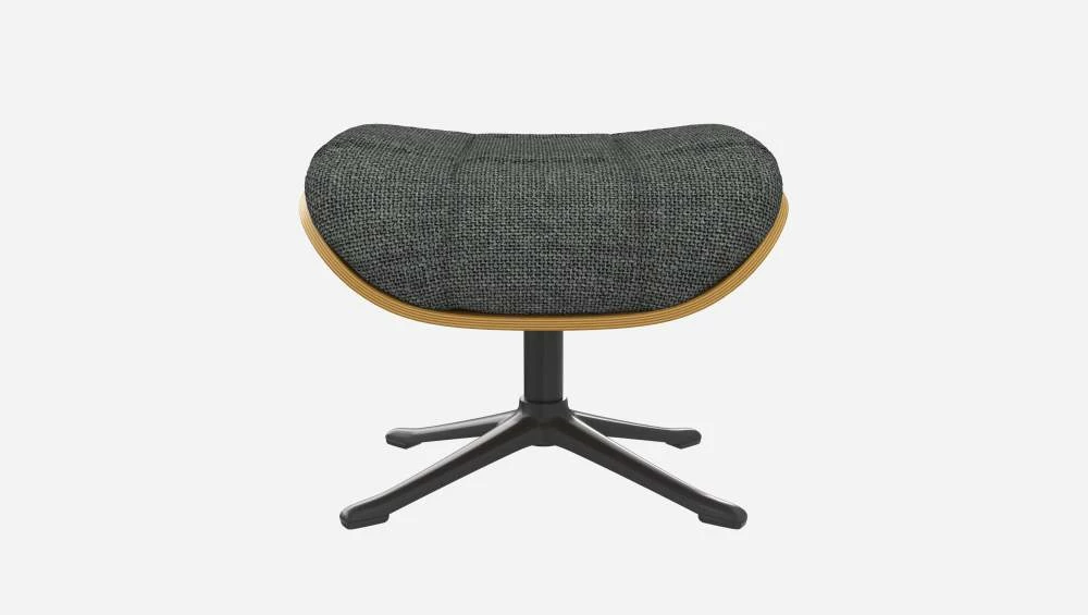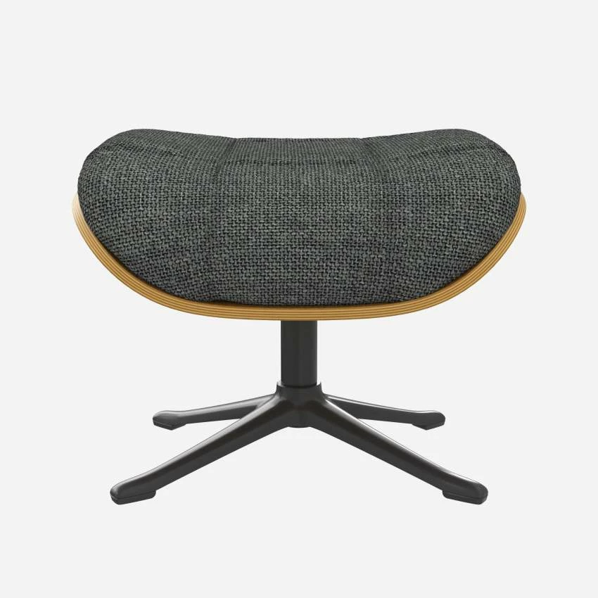 Le repose-pieds Marc en chêne et tissu Melina gris ardoise avec pied noir offre un confort ultime.