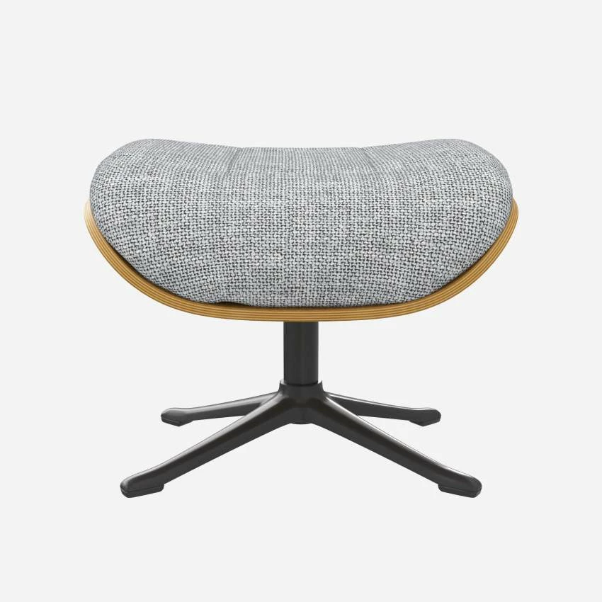 Le repose-pieds Marc en chêne et tissu Melina gris asphalte avec pied noir offre un confort ultime.