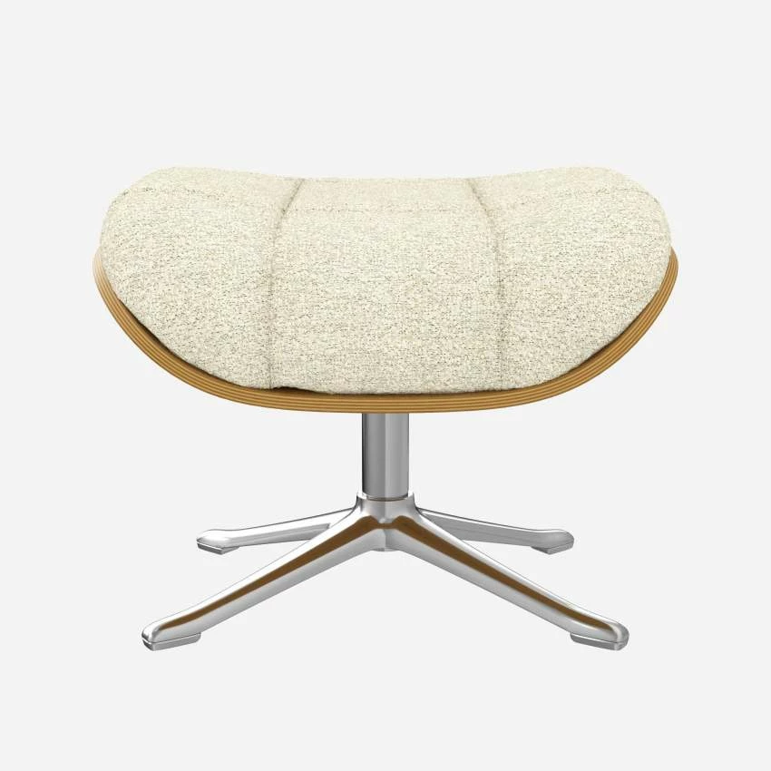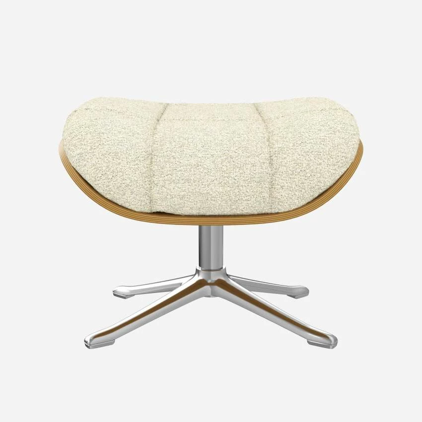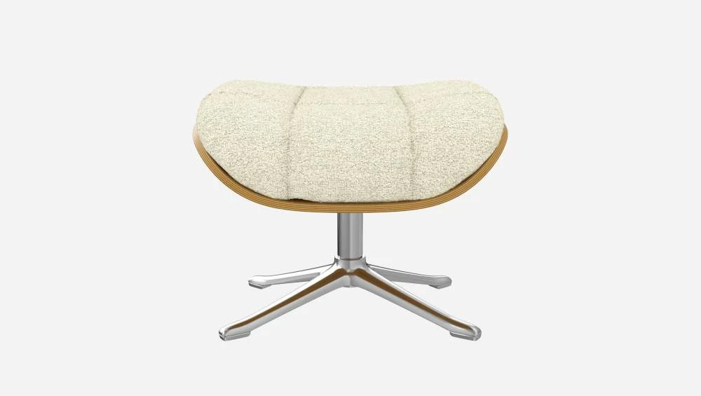 Le repose-pieds Marc en chêne et tissu Venezia blanc craie avec pied aluminium offre un confort ultime.