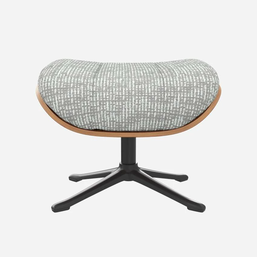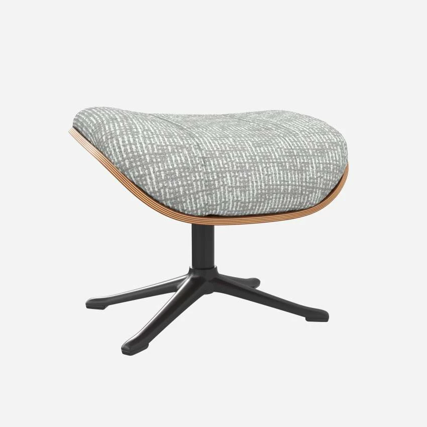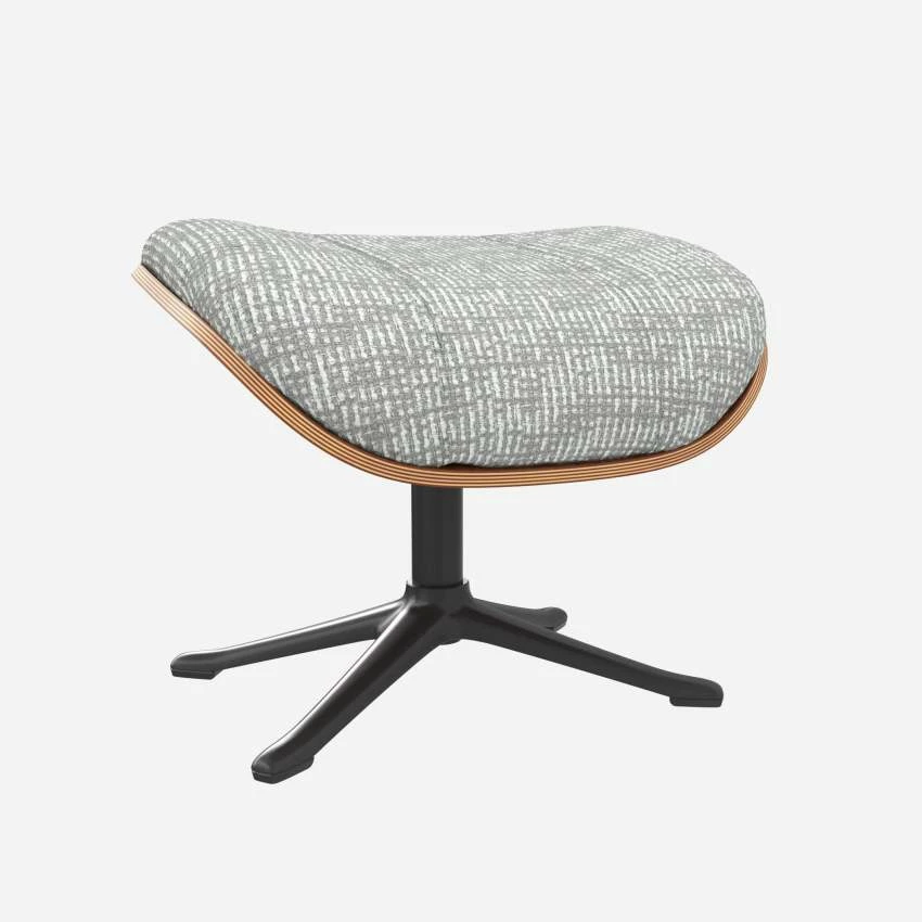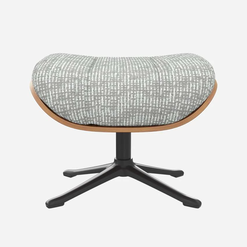 Le repose-pieds Marc en noyer et tissu Alba gris brume avec pied noir offre un confort ultime.