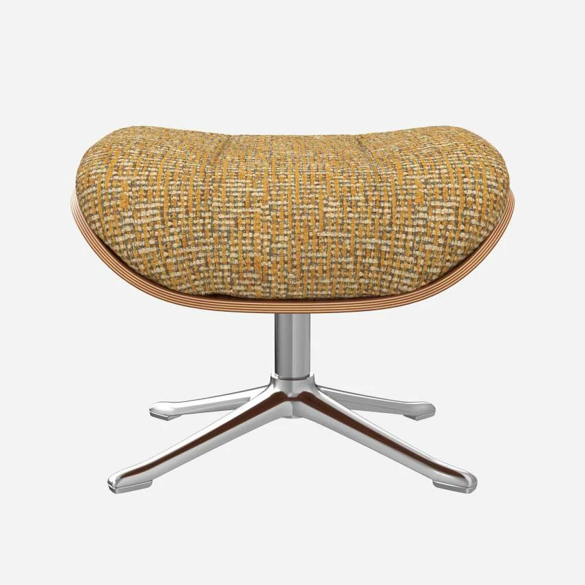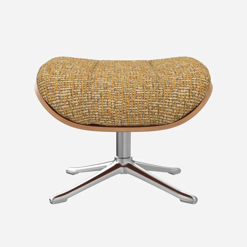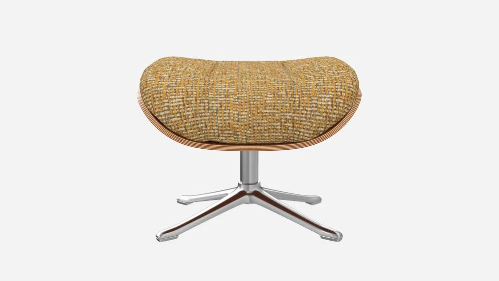 Le repose-pieds Marc en noyer et tissu Alba jaune soleil avec pied aluminium offre un confort ultime.