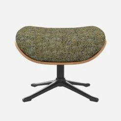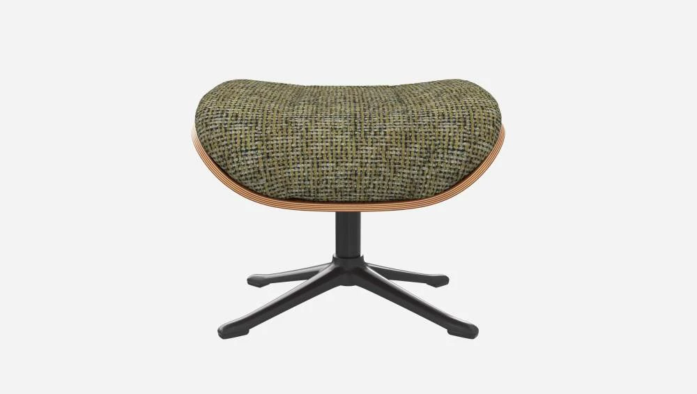 Le repose-pieds Marc en noyer et tissu Alba vert orage avec pied noir offre un confort ultime.