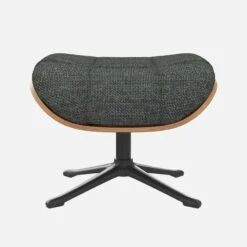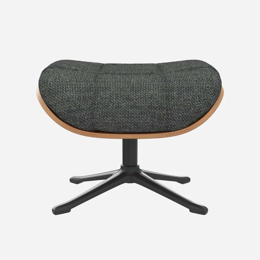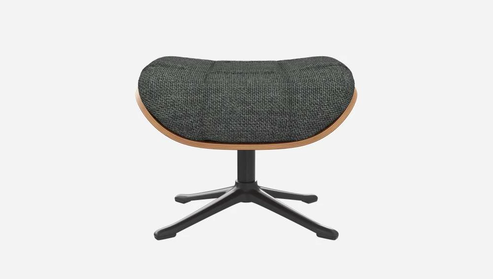 Le repose-pieds Marc en noyer et tissu Melina gris ardoise avec pied noir offre un confort ultime.