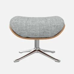 Le repose-pieds Marc en noyer et tissu Melina gris asphalte avec pied aluminium offre un confort ultime.