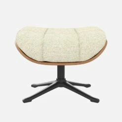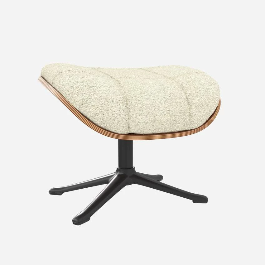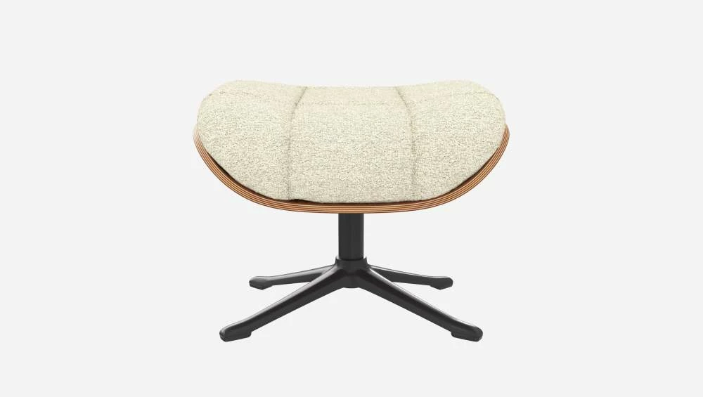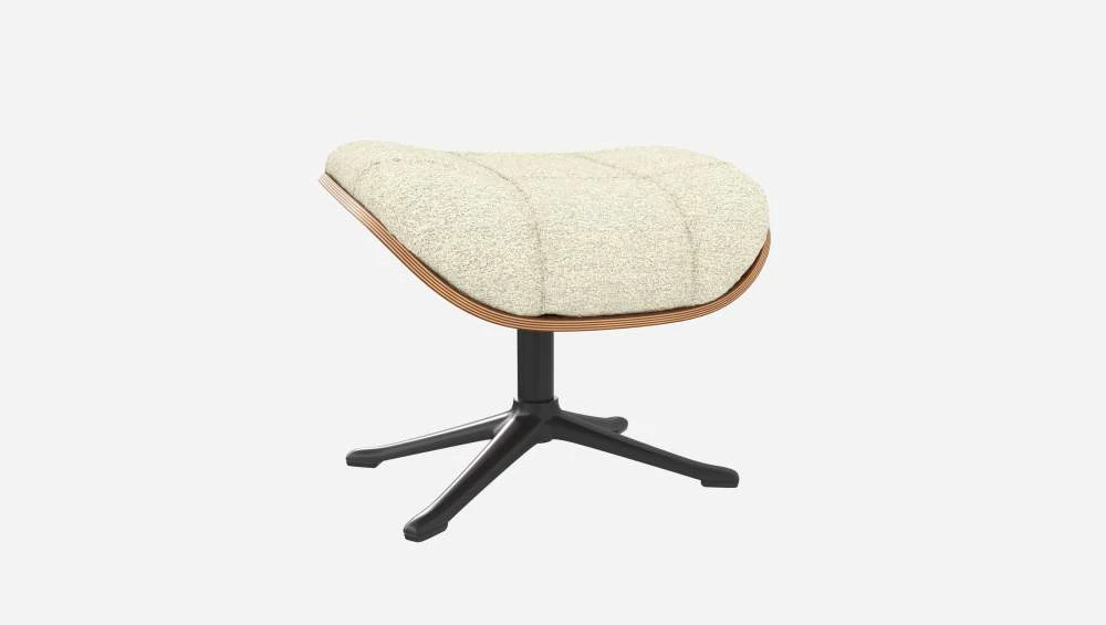 Le repose-pieds Marc en noyer et tissu Venezia blanc craie avec pied noir offre un confort ultime.