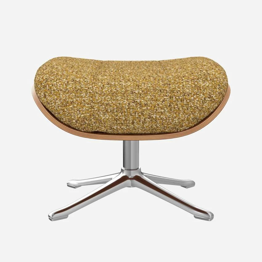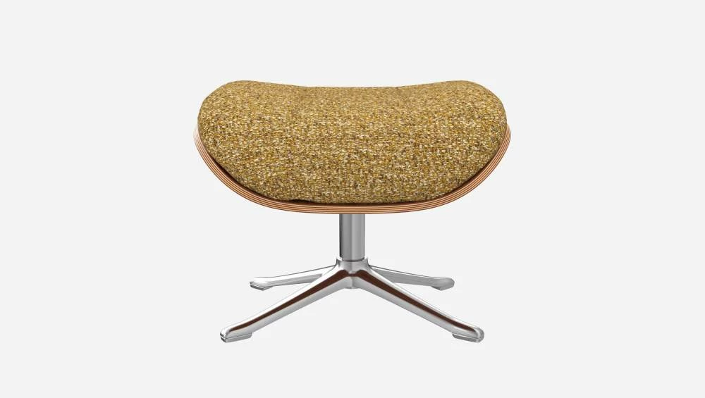 Le repose-pieds Marc en noyer et tissu Venezia jaune épice avec pied aluminium offre un confort ultime.