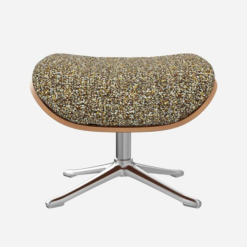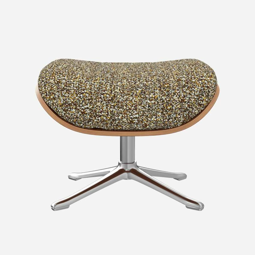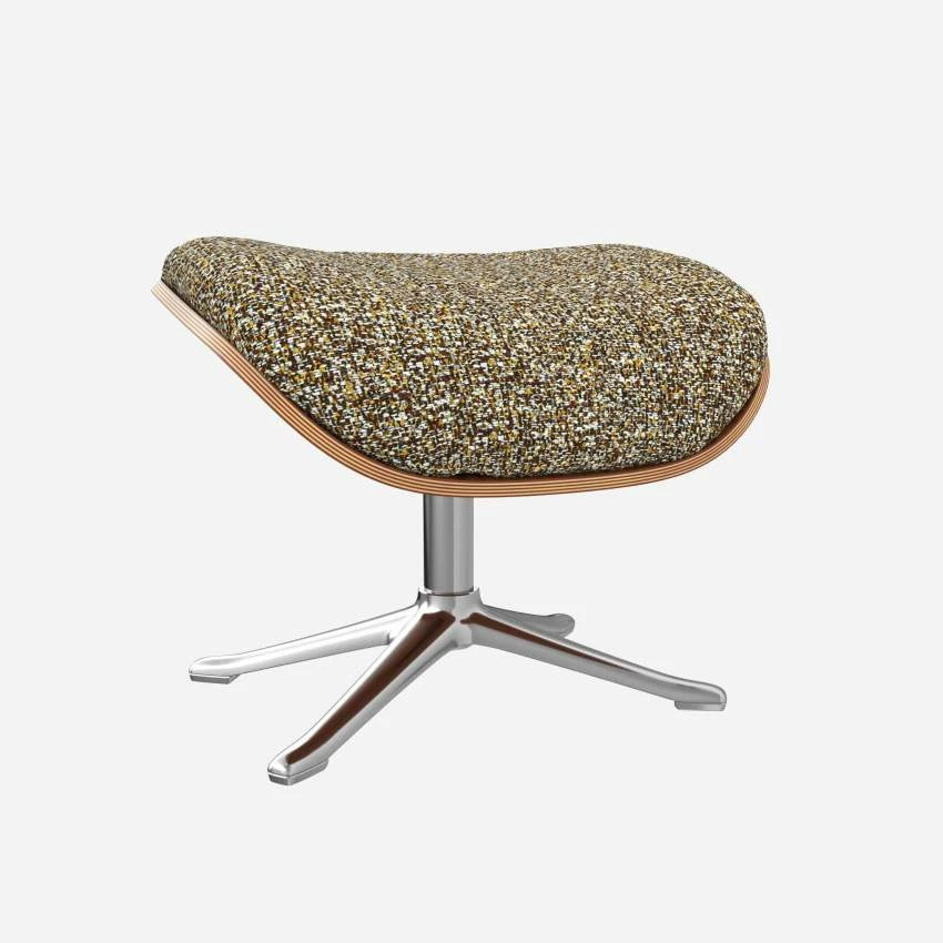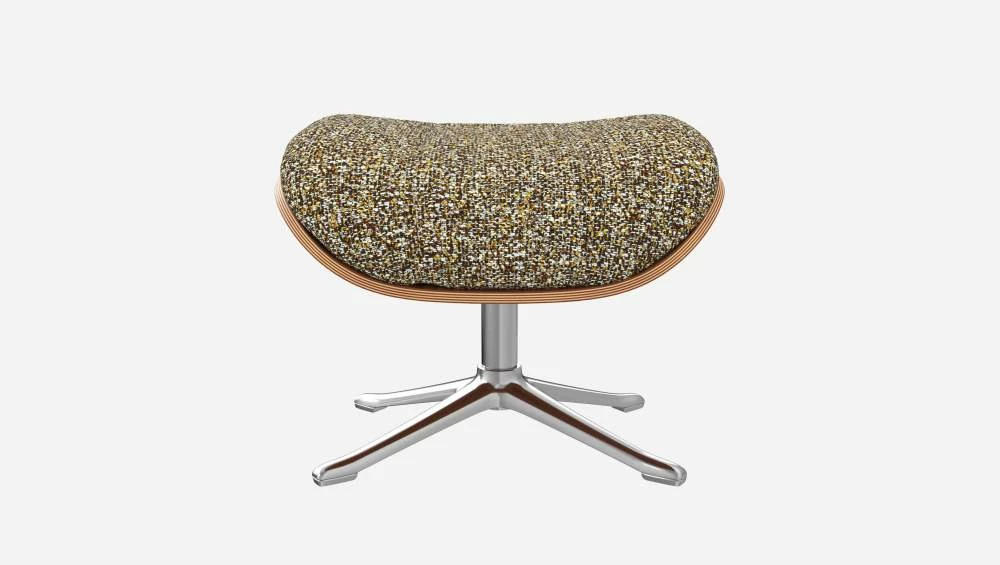 Le repose-pieds Marc en noyer et tissu Venezia vert lichen avec pied aluminium offre un confort ultime.