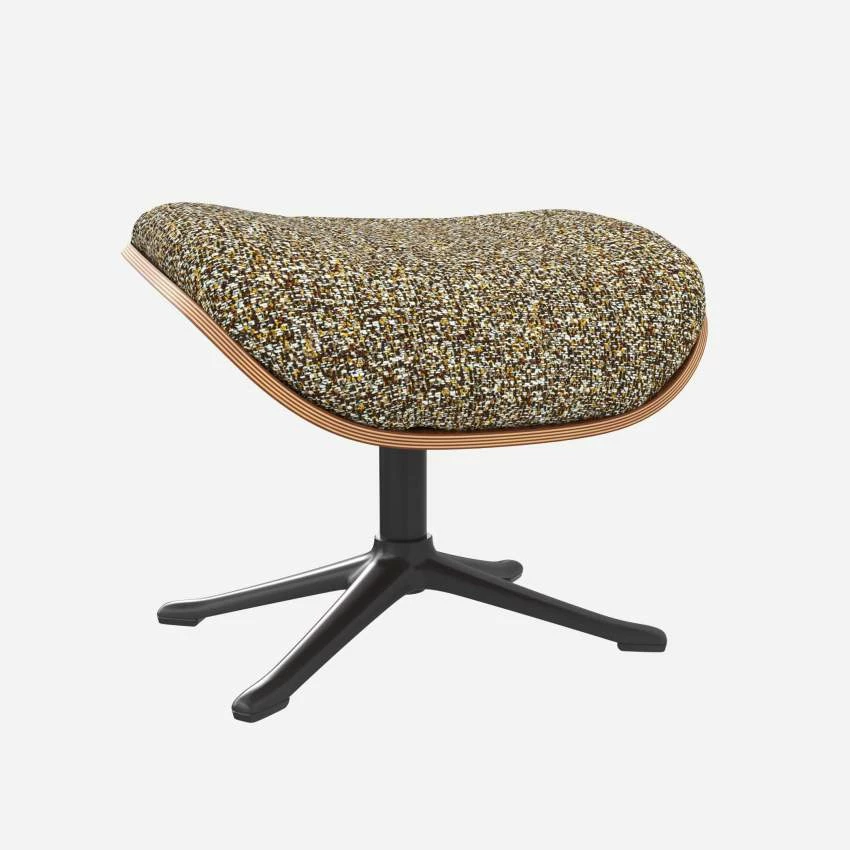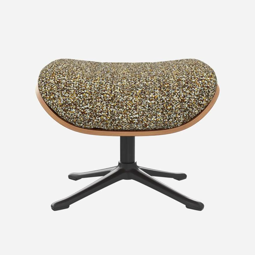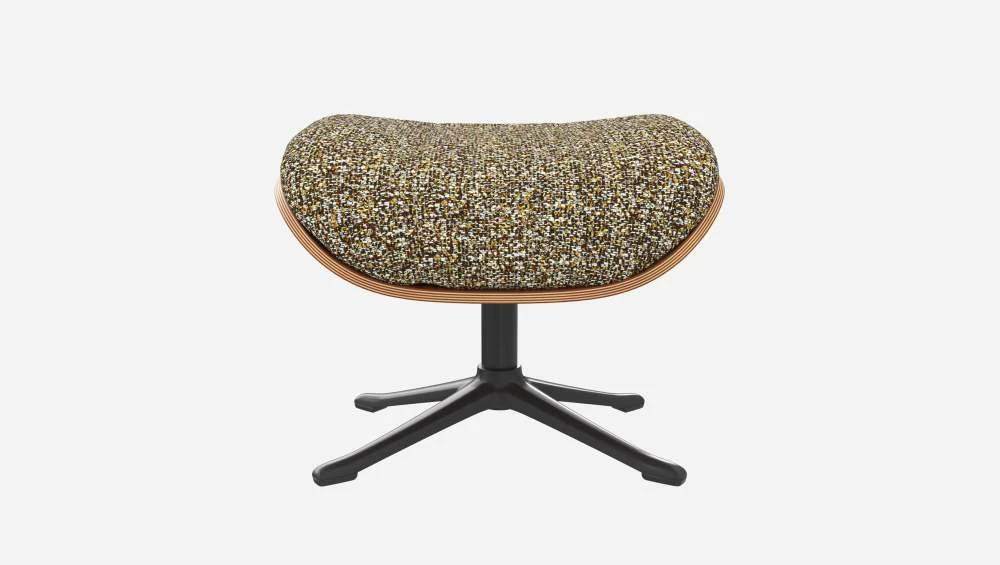 Le repose-pieds Marc en noyer et tissu Venezia vert lichen avec pied noir offre un confort ultime.