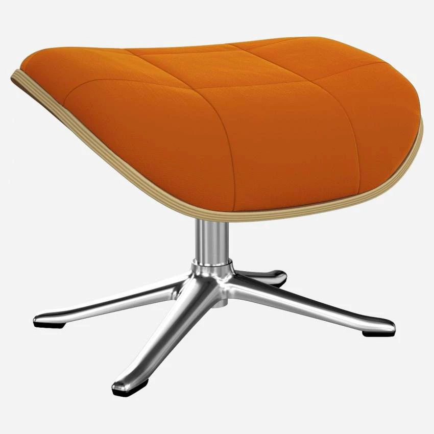 Le repose-pieds Marc en noyer et velours jaune moutarde avec pied aluminium offre un confort ultime, grâce à son dossier inclinable et à sa têtière ajustable en hauteur.