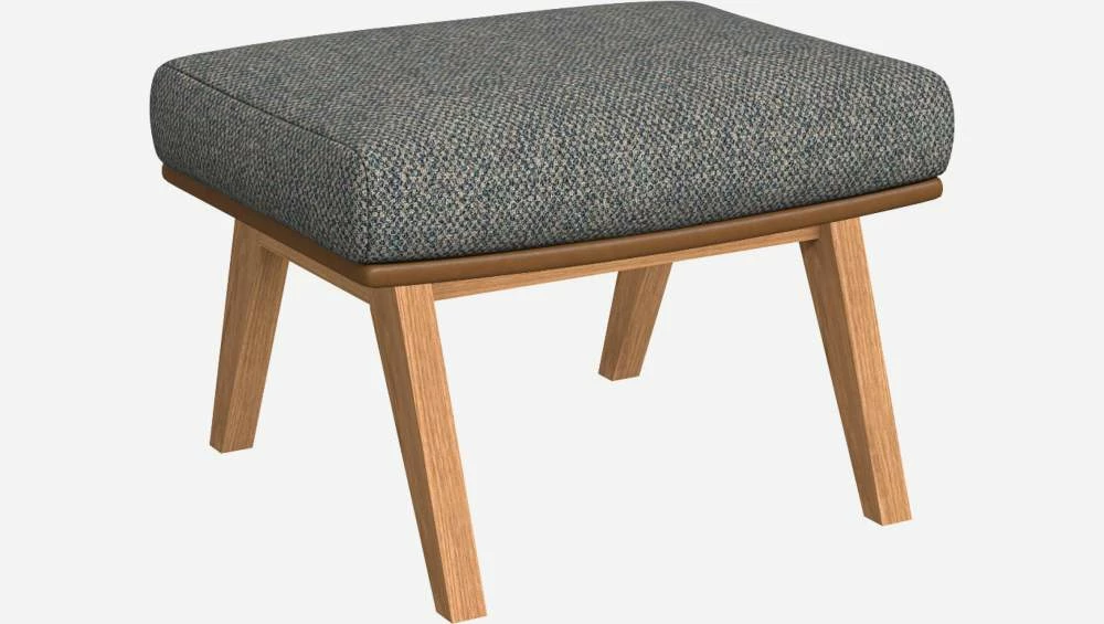 Habitat Repose-pieds En Tissu Bellagio Bleu Céleste Et Cuir Vintage – Pieds Chêne